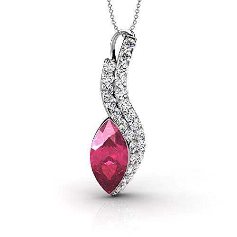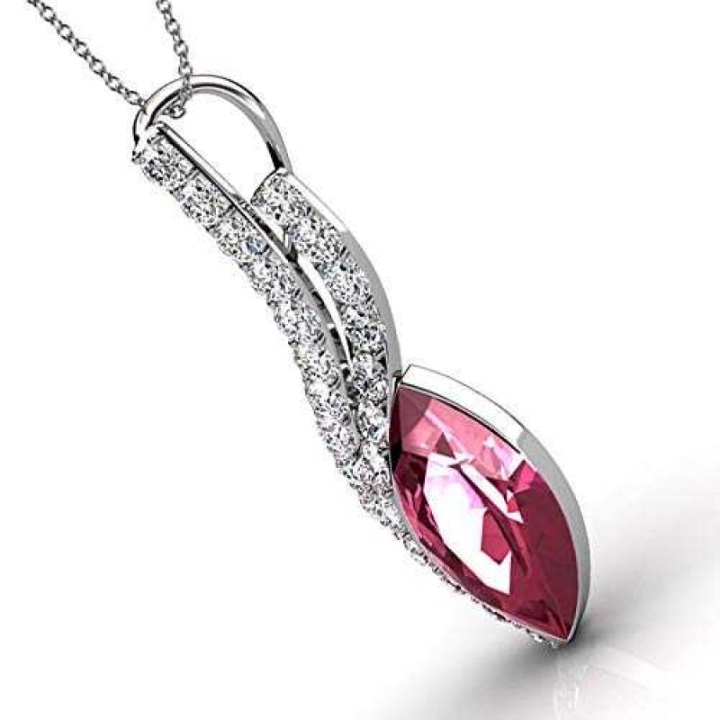 A perfect partner for the perfect beauty. This twisted pendant with a shimmering crystal pendant adds just the right amount of sparkle. This pendant suspends along an 18-inch chain that secures with a lobster clasp. This shimmering and shinning pendant is sure to throw admiring glances as you wear this for any occasion.