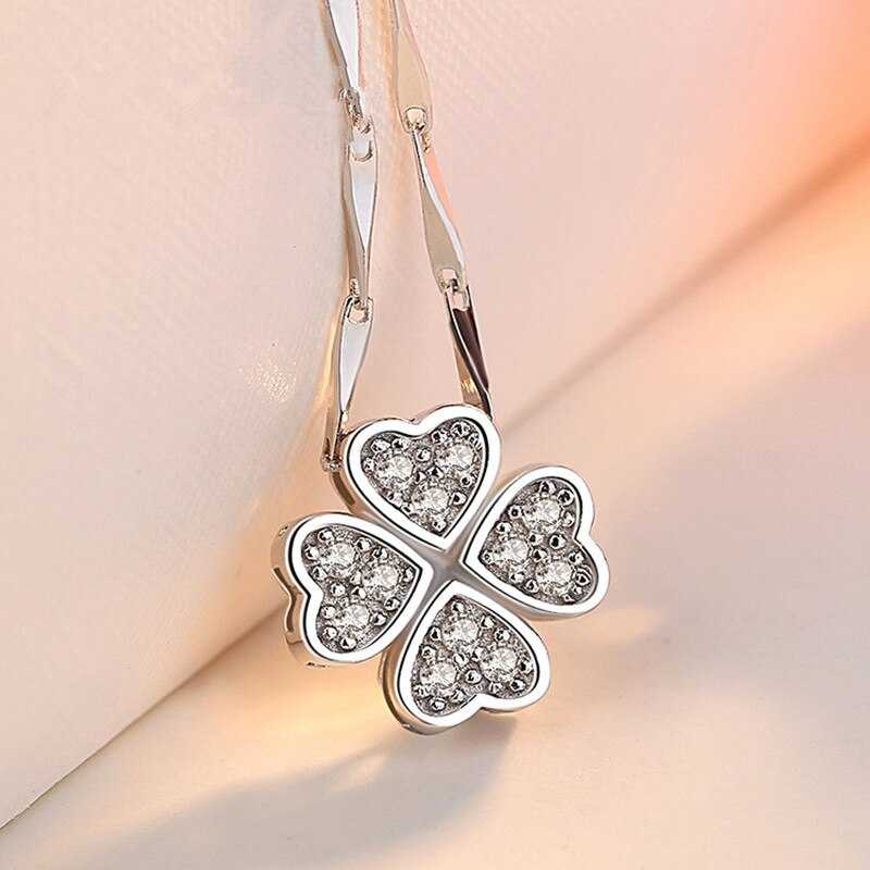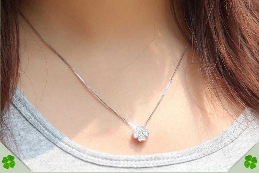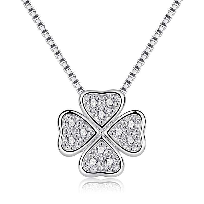Women's Cubic Zirconia Clover Petal Silver Plated Necklace