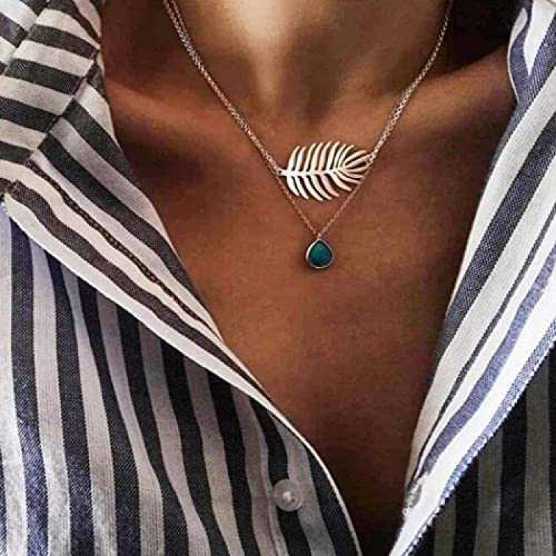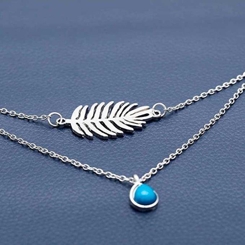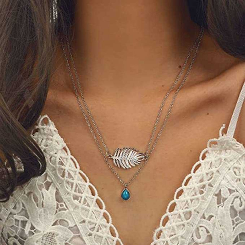 Flaunt your boho spirit with this Pocahontas-inspired layered necklace. Wear this layered necklace with a feather and teardrop pendant that will accentuate your neckline and your spirited vibe. These pendants suspend on a link chain secured with a lobster clasp.