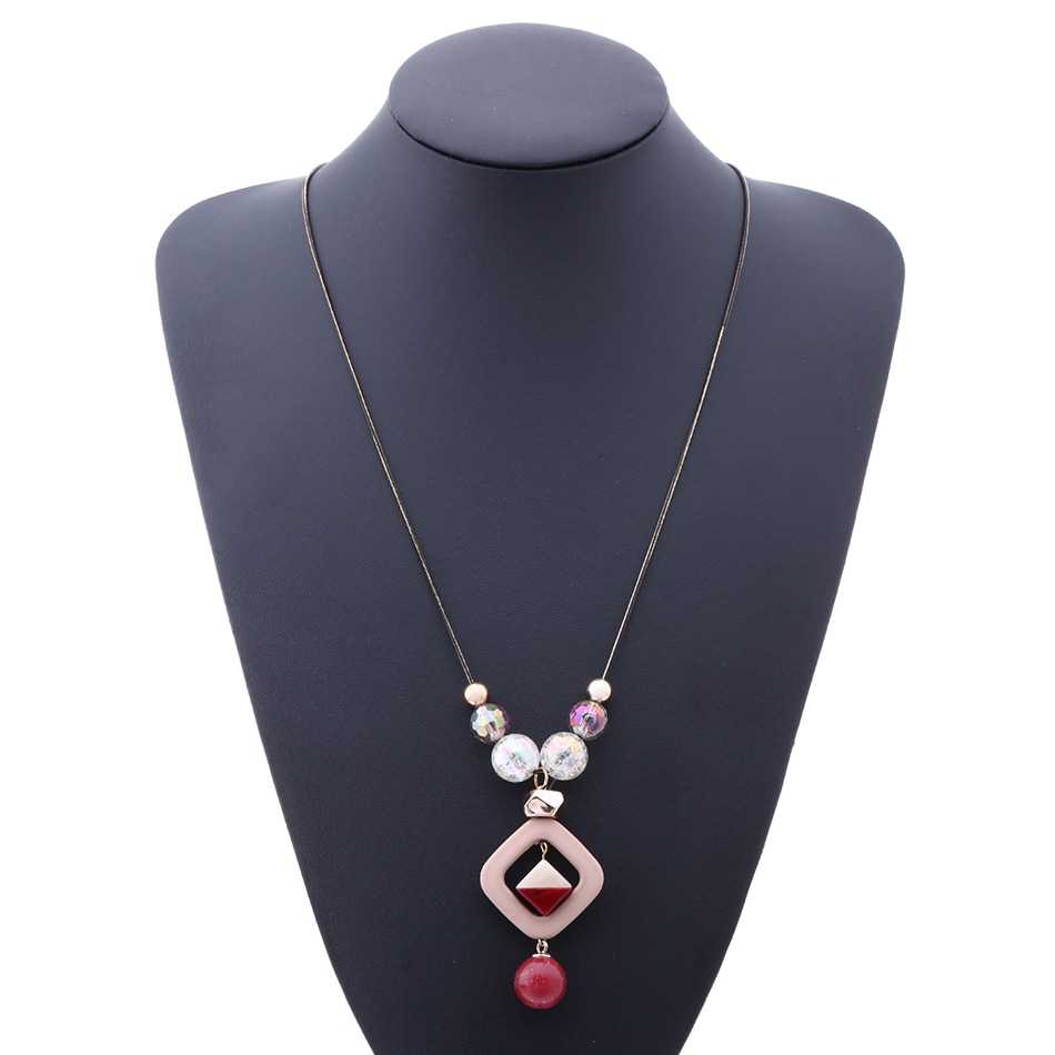 Women's Geometric Pattern Sweater Necklace With Acrylic Beads