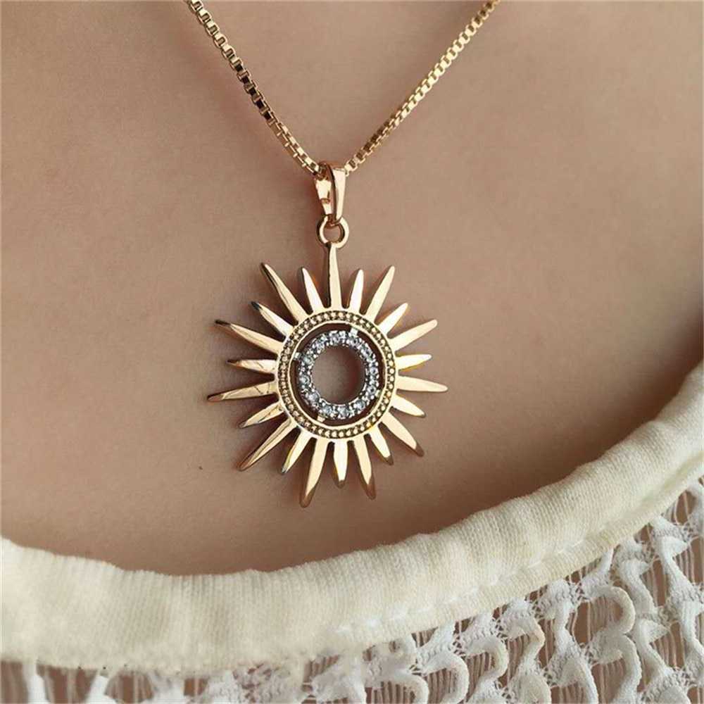 Women's Gold Plated Sun Ray Pendant Necklace With Chain