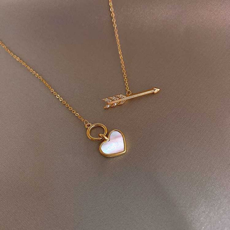 Bling Queen is an affordable fashion jewellery brand with various product types like bracelets, necklaces, earrings, rings, etc. suitable for women, men and kids. At the center of the necklace hangs a charming pendant comprised of two main elements that is an arrow piercing through a heart shaped shell. The pendant features a romantic heart shaped design, representing the universal symbol of love and passion. The necklace features a clavicle chain, also known as a collarbone chain, designed to gracefully drape around the neckline. The chain is typically delicate and lightweight, ensuring comfortable wear
