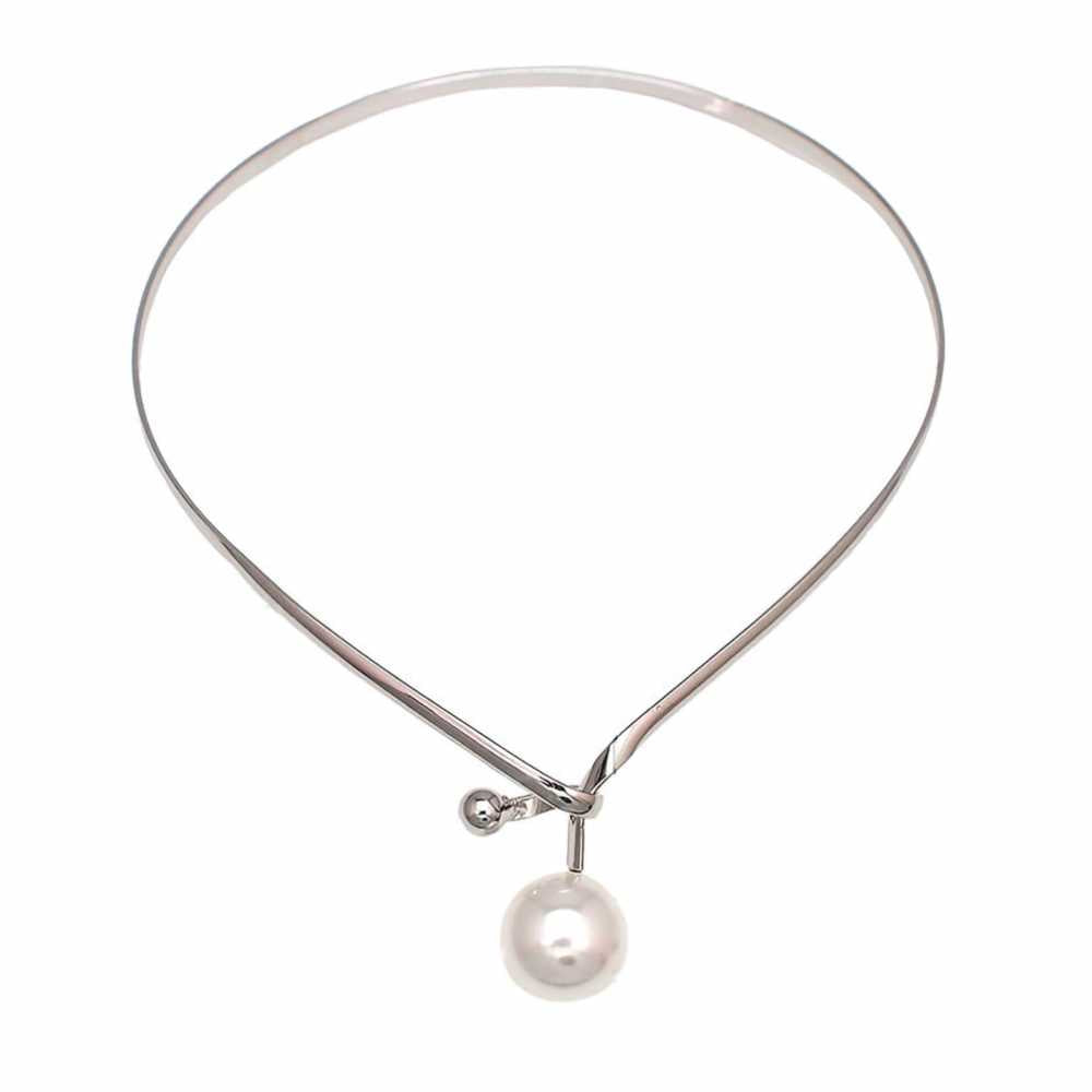 - Product particulars: The necklace is typically crafted from high quality materials to ensure durability and longevity and features a sleek silver plated torques design. Carefully selected to mimic the lustrous beauty of natural pearls.
