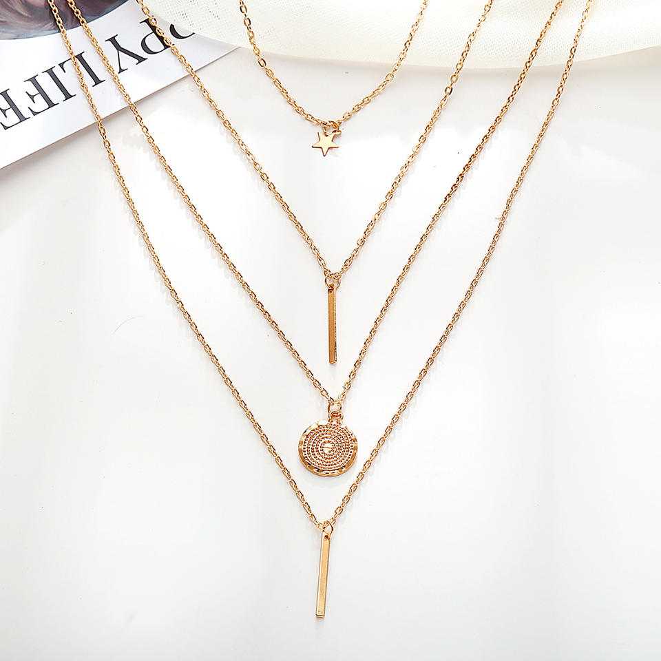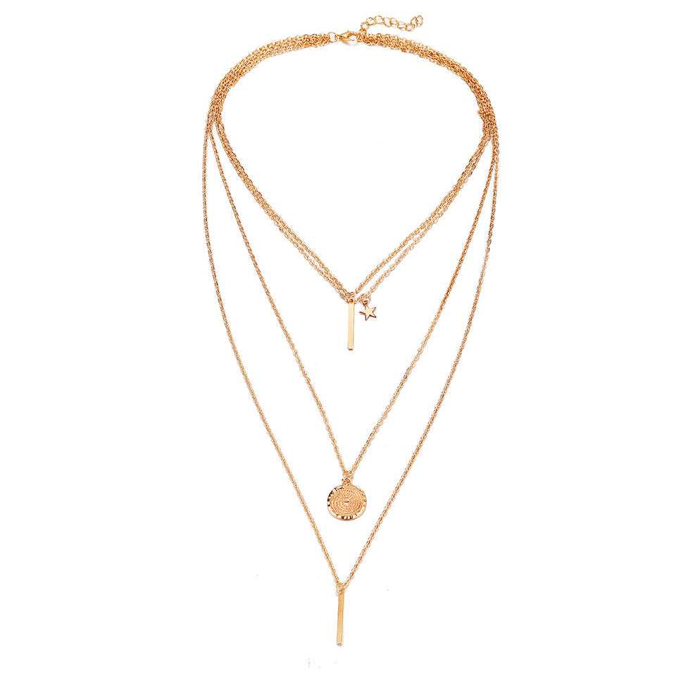A work of art that encapsulates the essence of elegance and allure. Each layer of this necklace is meticulously adorned with a luxurious gold-plated finish, reflecting light with a brilliance that is both captivating and enchanting. The layers are artfully arranged to create a sense of depth and movement, draping elegantly around your neckline and accentuating your innate beauty. The lobster claw clasp, a hallmark of precision engineering, ensures a secure and seamless fit. Adorning yourself with this necklace is a breeze, allowing you to effortlessly enhance your look for any occasion. Redefine luxury and embrace the allure of timeless beauty with every radiant layer.