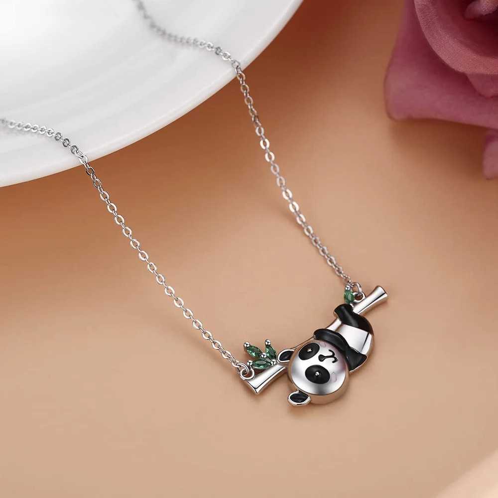 The pendant is the focal point of the necklace, meticulously crafted in the shape of a panda bear. It is made from a base metal and then plated with rose gold, gold, or silver, depending on the variant chosen. The choice of plating adds a luxurious touch and enhances the pendant's durability. The necklace comes with a collar bone cable link chain, which is designed to sit gracefully along the collarbone area when worn. The cable link chain is known for its strength and durability, ensuring that the necklace withstands regular wear without losing its shape or luster. A charming accessory that combines whimsical design with quality craftsmanship. Whether worn as a personal statement or gifted to a loved one, it adds a touch of joy and style to any jewelry collection.