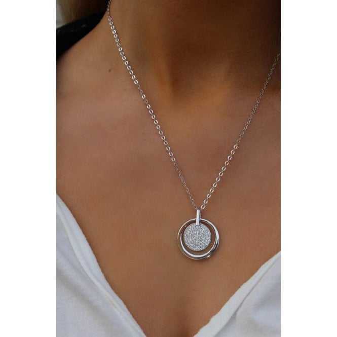 Women's Rhodium Plated With Cubic Zirconia Pendant Necklace