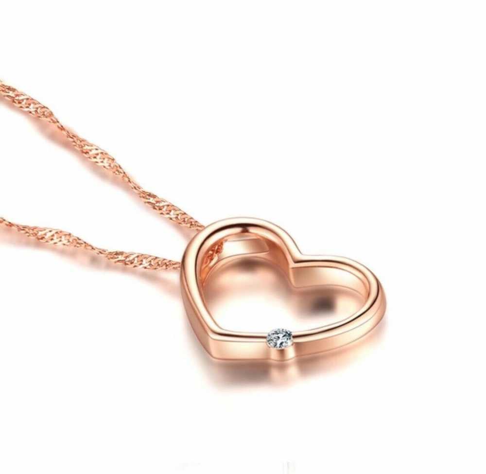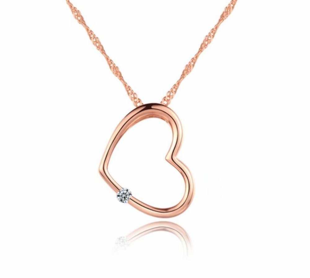 • Product Particulars: Crafted from rose gold plated metal, at the center of the heart shaped pendant sits a tiny round shaped zirconia stone. The pendant comes with a twist rope chain and is secured with a lobster claw clasp.