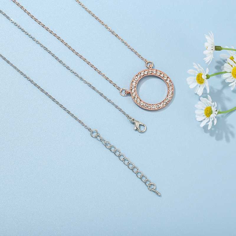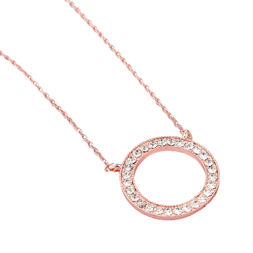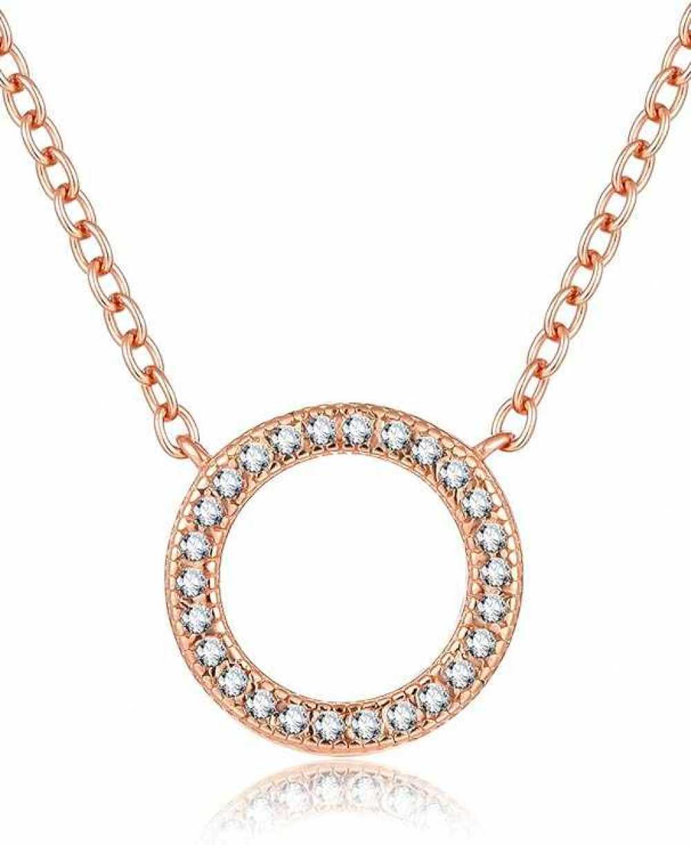Women's Rose Gold Round Pendant Necklace With Cubic Zirconia