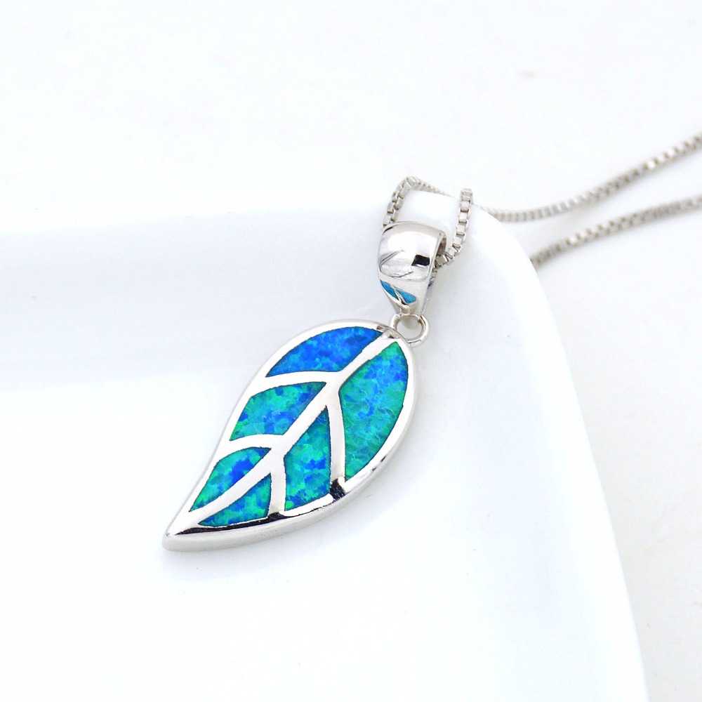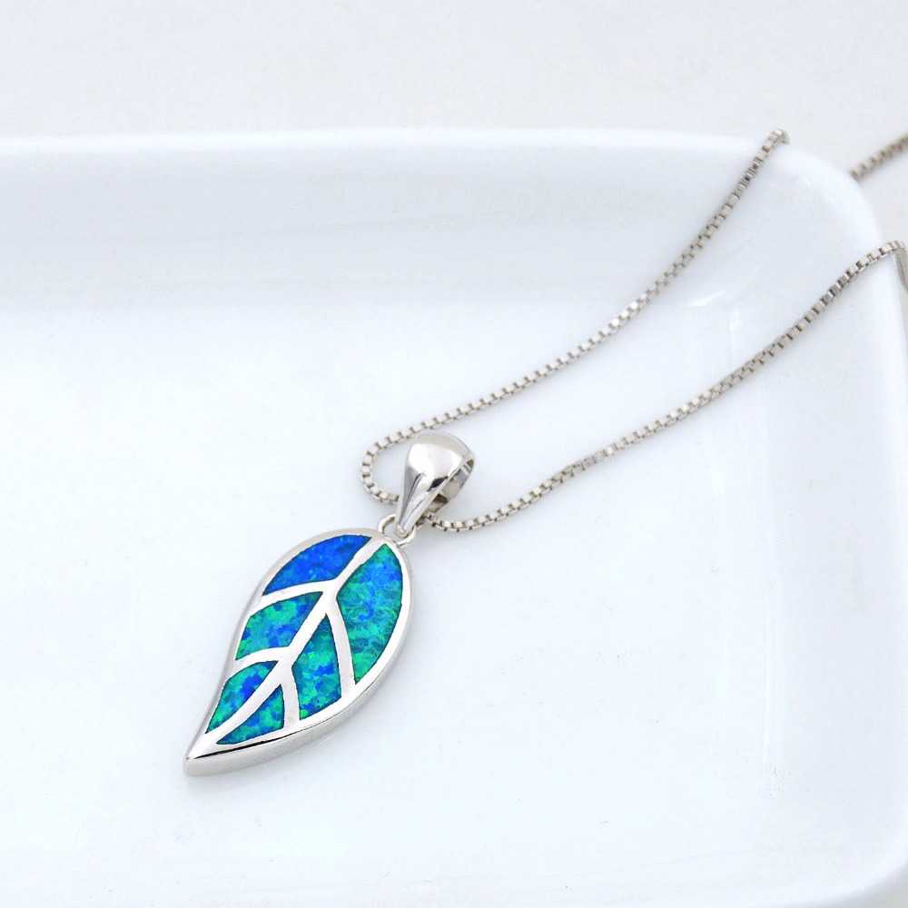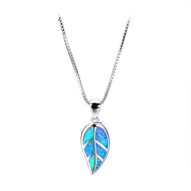 Women's Silver Plated Blue Opal Stone Studded Leaf Pendant Necklace