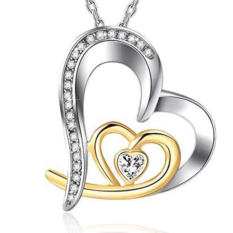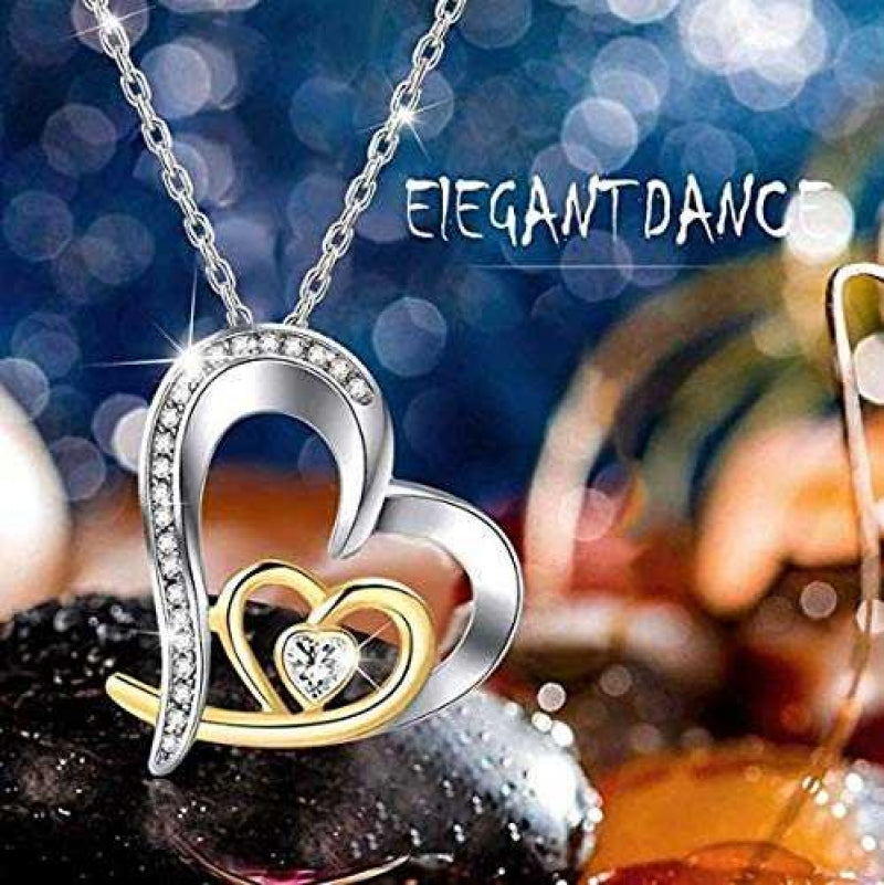 Women's Silver Plated Double Heart Love Chain Pendant Necklace
