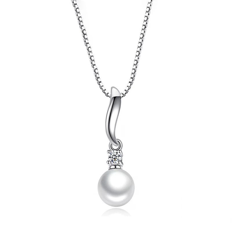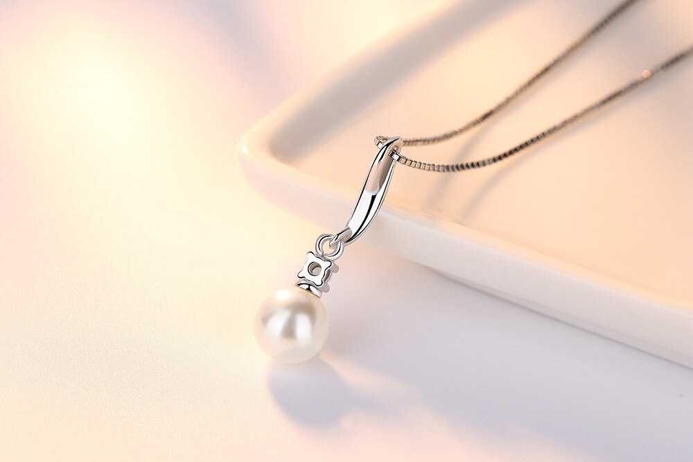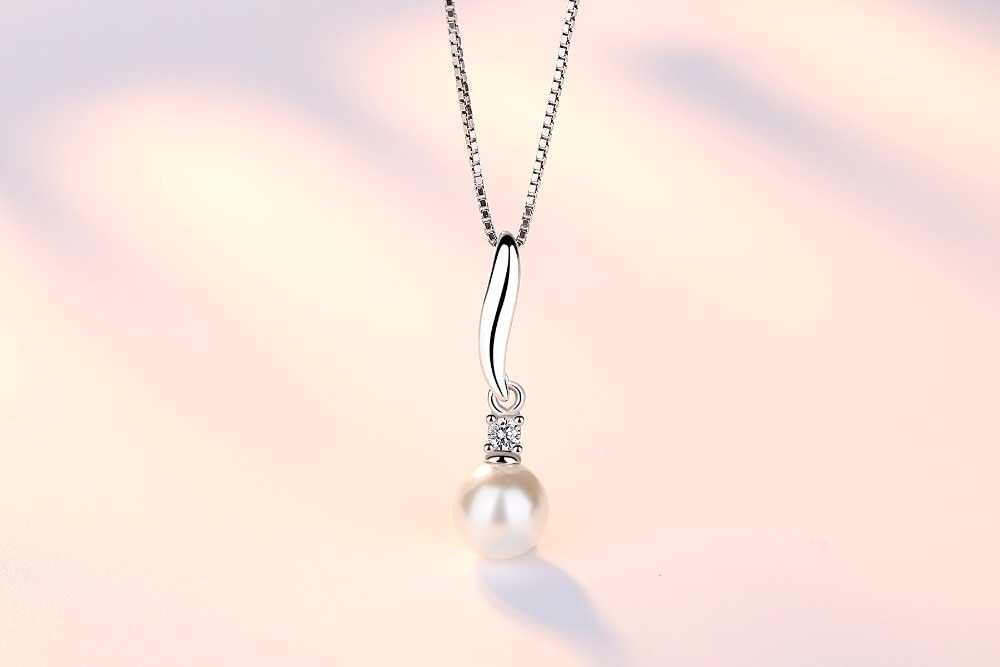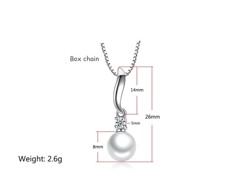 - Product Particulars: Crafted from high quality silver plated metal, adorned with cubic zirconia and faux pearl. This pendant is suspended from delicate box chain.