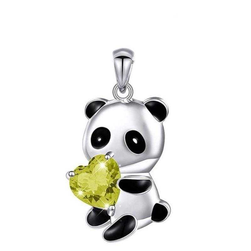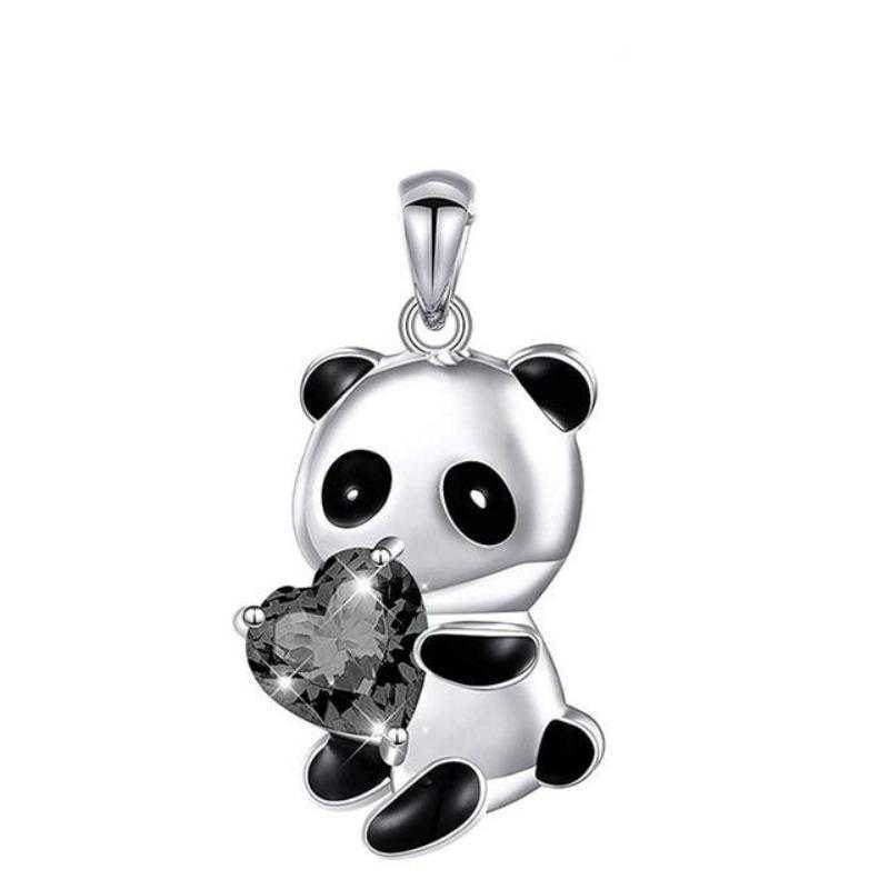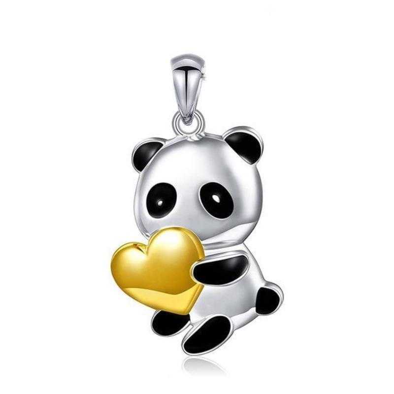 This pendant showcases a beautifully crafted panda bear embracing a heart shaped motif, symbolizing love, affection, and tenderness. The panda's arms are outstretched, gently embracing a heart shaped motif, symbolizing affection and warmth. Made from sturdy materials, the box chain provides strength and durability, ensuring that the pendant sits securely around the wearer's neck. The lobster claw closure ensures that the pendant stays in place, giving the wearer peace of mind. Its combination of adorable imagery, quality materials, and secure fastening make it a timeless piece of jewelry that effortlessly captures the essence of love and companionship.
