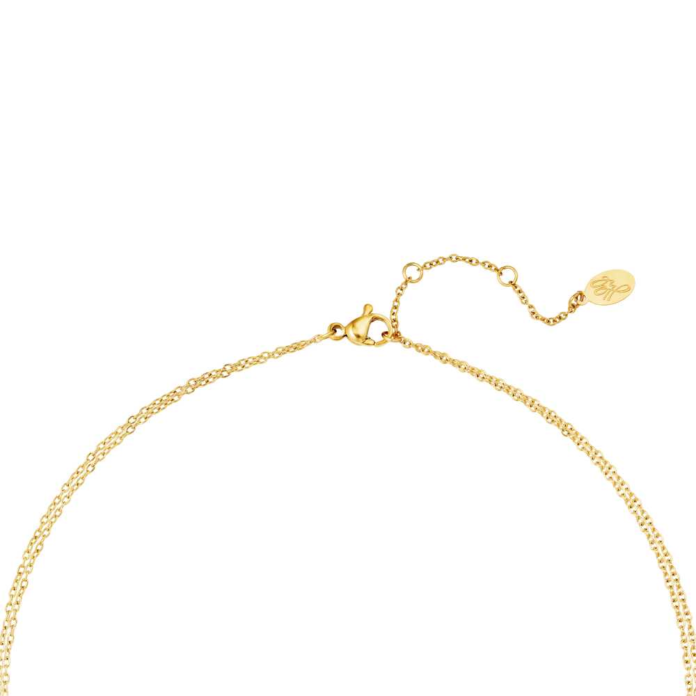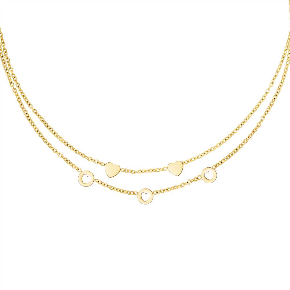 This double-layered stainless steel chain necklace is embellished with tiny heart pendants. The shortest chain consists of closed hearts. The second chain with open hearts. Are you a fan of layer necklaces then this is the must-have for you!