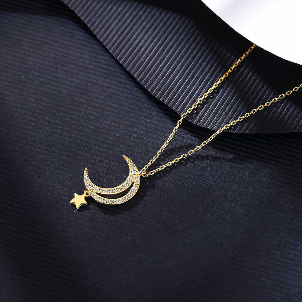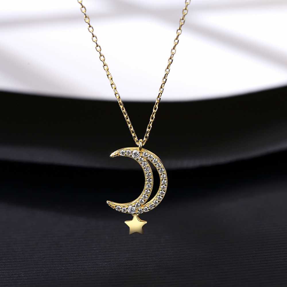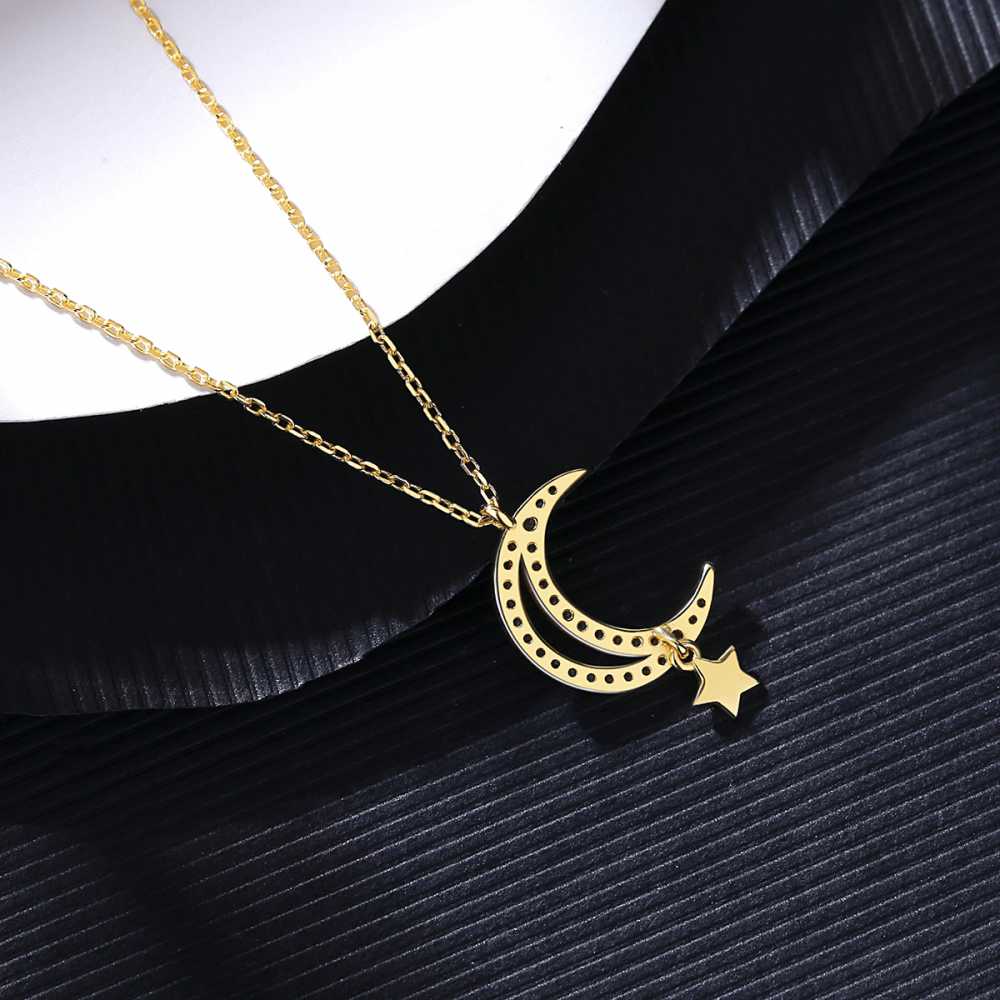 Sparkling moon and star pendant to put a twinkle on her eyes! This silver plated ever-stylish pendant necklace with a hollow crescent moon is studded with cubic zirconia and features a polished star drop. This whimsical design symbolically assures her that you will give her the moon and star as you promise her eternity. This beautiful pendant suspends on an 18-inch link chain.