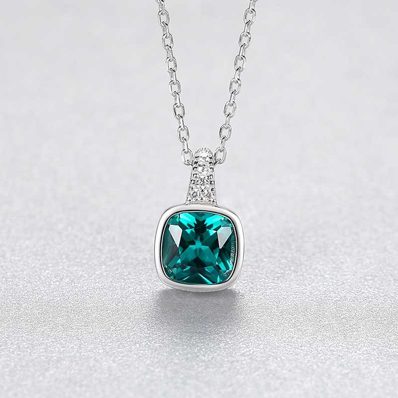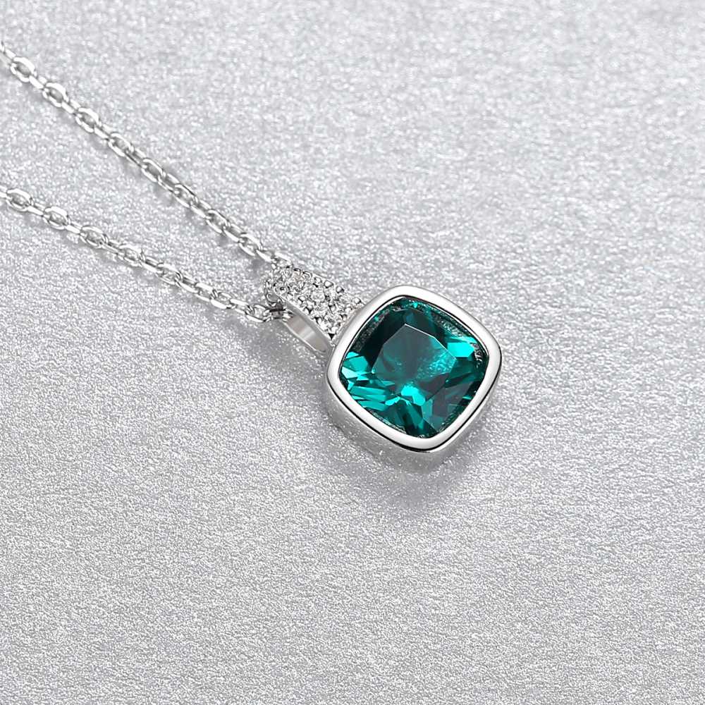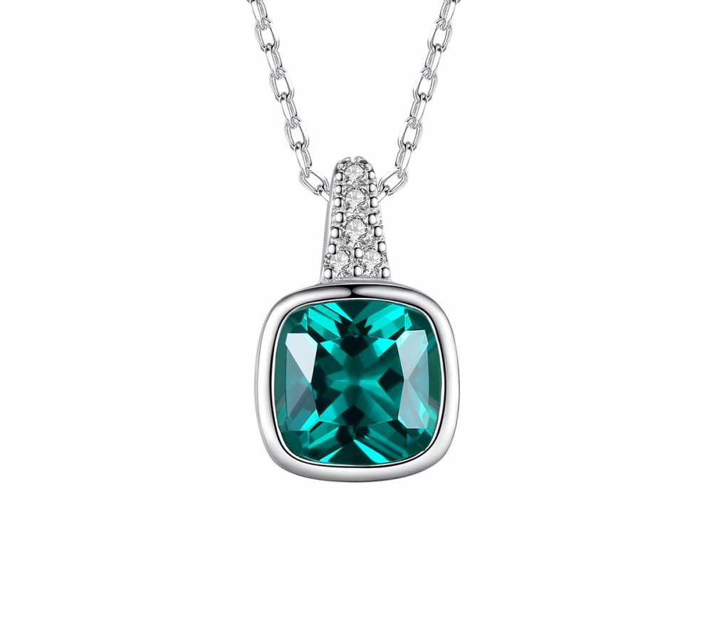 Pop of color on your neckline that dazzles with this vibrant gemstone drop pendant. This square drop pendant hangs on a shimmering bale studded with zirconia that suspends from an 18-inch link chain.