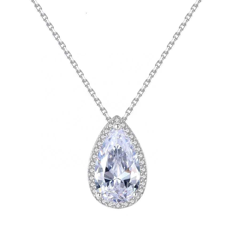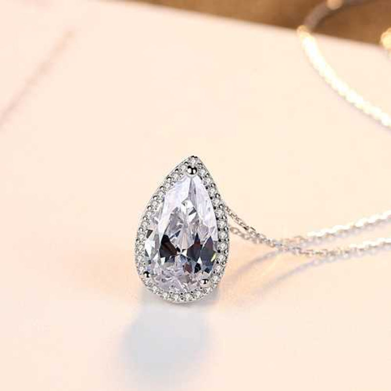 Women's Silver Plated Zirconia Pear Shaped Necklace