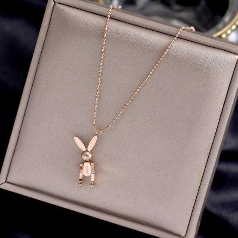 The focal point of this necklace is the adorable bunny pendant. Crafted with precision, the bunny charm showcases intricate details, such as its ears, face, and body, capturing the essence of cuteness and charm. The pendant's design is sleek and minimalist, making it suitable for both casual and formal wear. Whether worn as a standalone piece or layered with other necklaces, this pendant necklace effortlessly complements a wide range of outfits and occasions.
