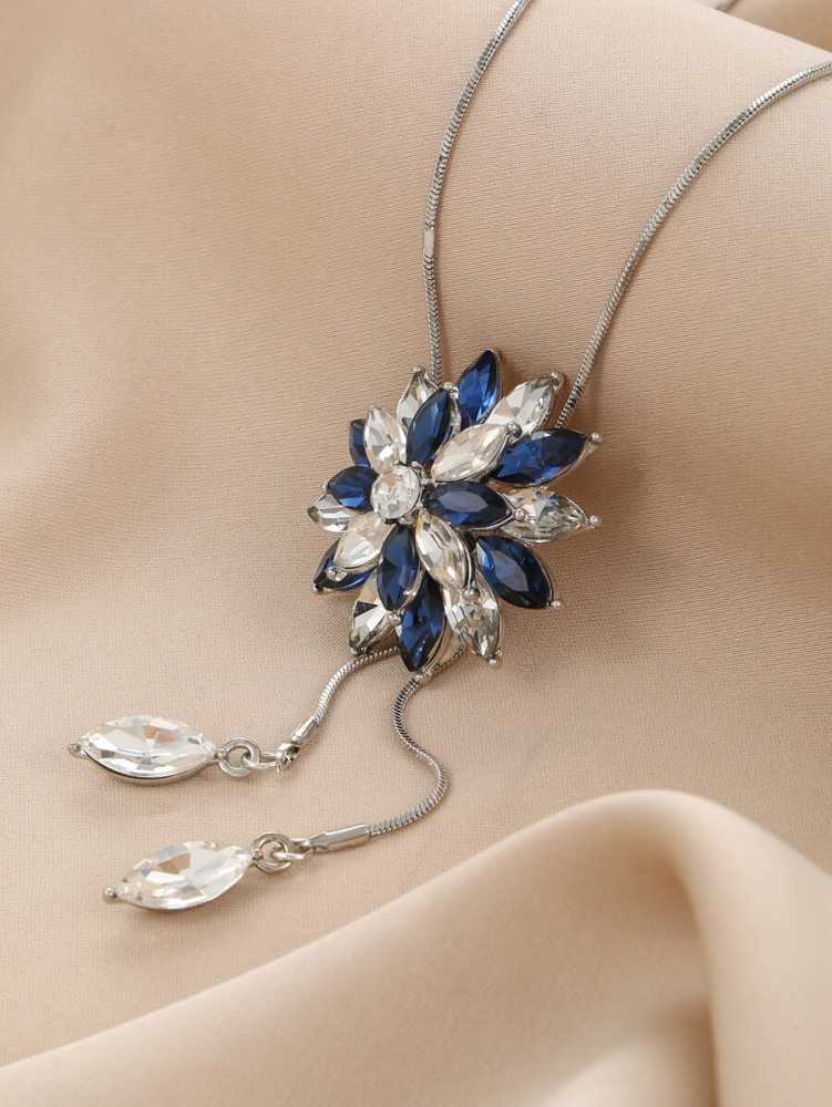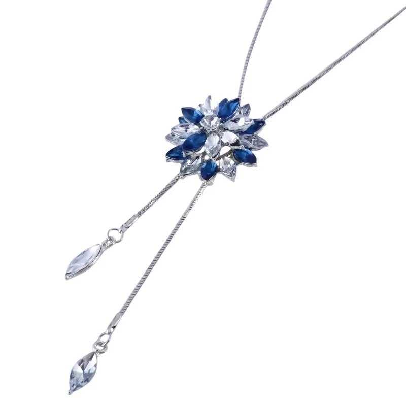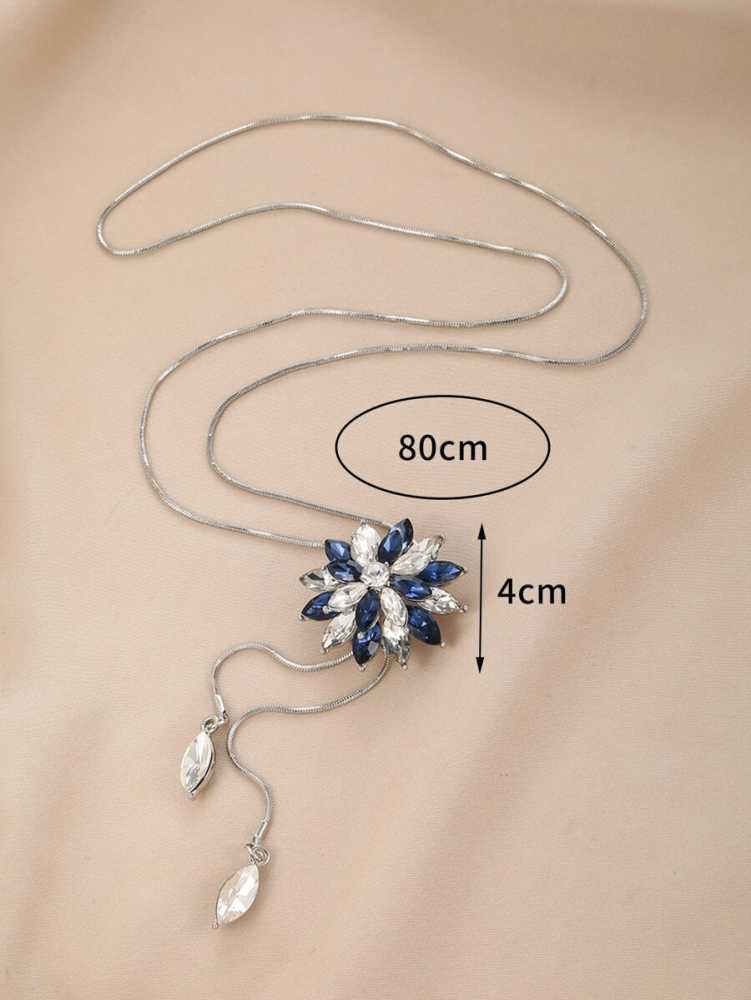 Women's Zirconia Flower Pendant Adjustable Long Chain Necklace