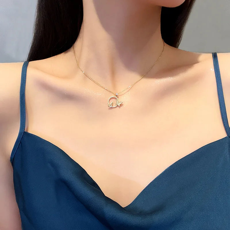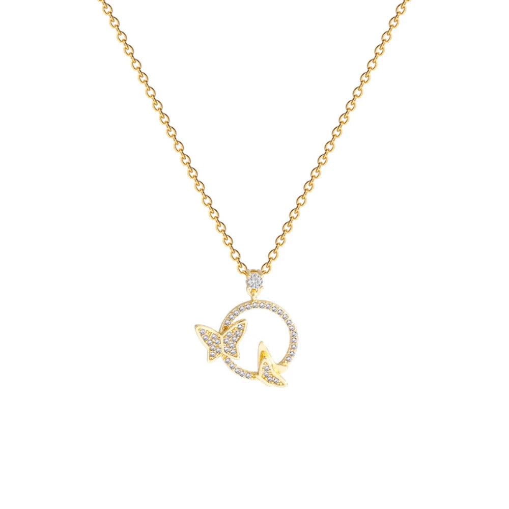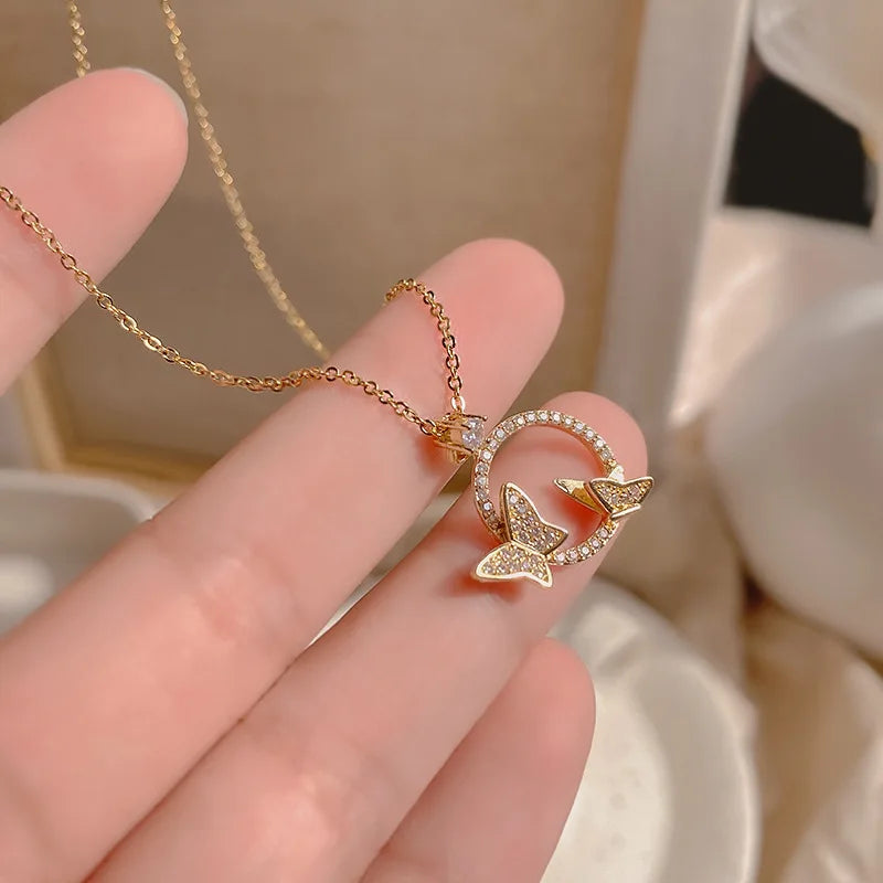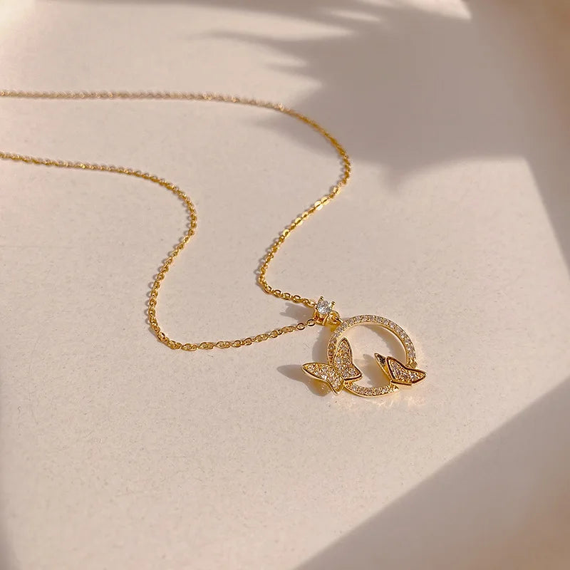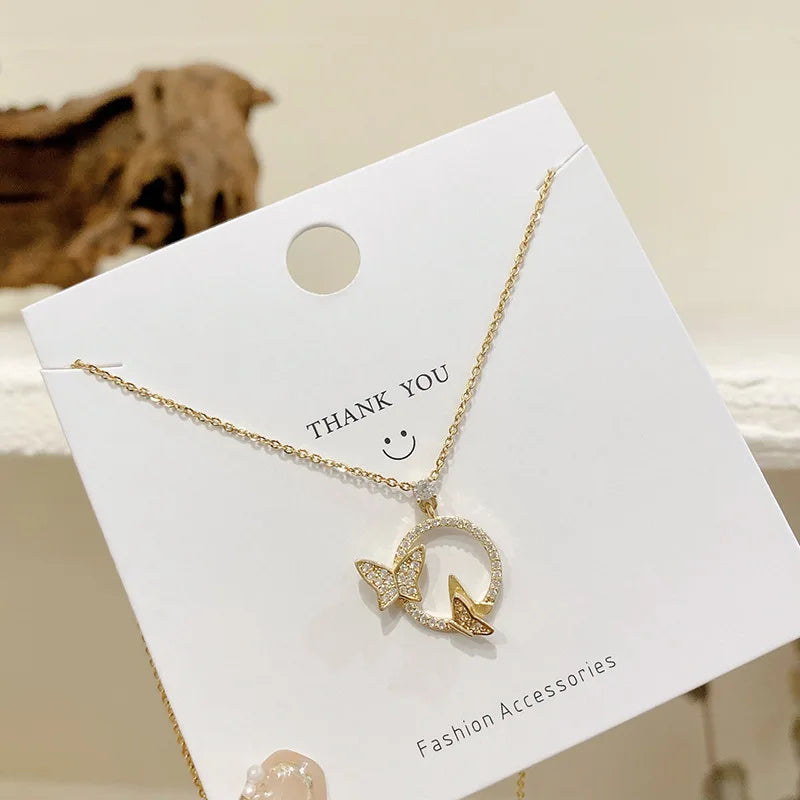 This exquisite zirconia butterfly necklace features a round personalized pendant and a sense of elegance. The hollowed out design adds charm to your collarbone.