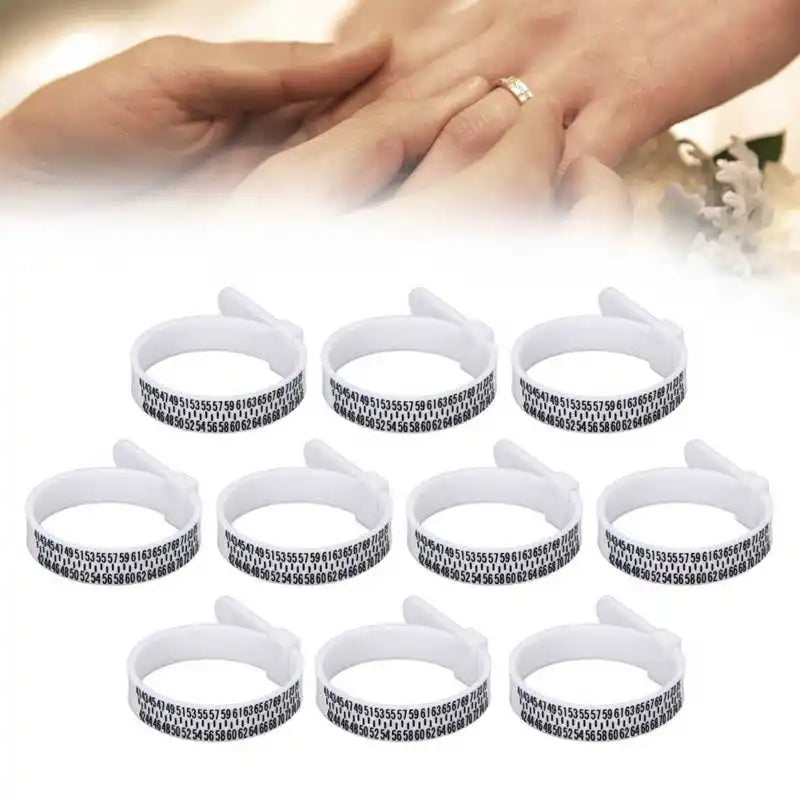 This set of 10 ring sizers is a convenient tool to measure your ring size accurately. Suitable for both women and men, these sizers can also be used to measure wristwatch and bracelet sizes.