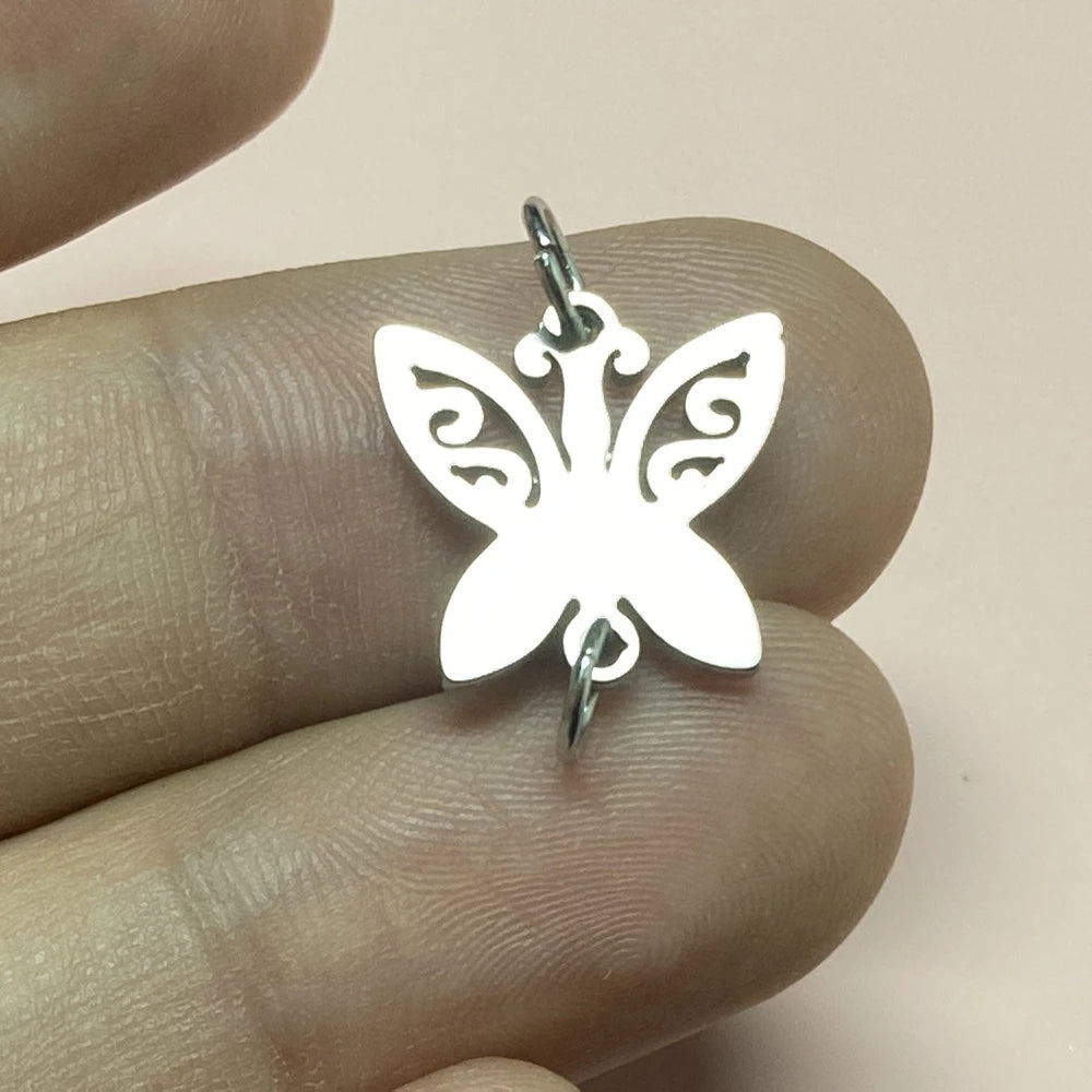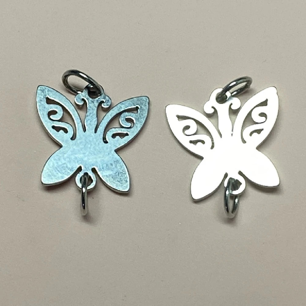 Add a touch of nature-inspired beauty to your creations with these butterfly charms. Made of stainless steel, these charms are perfect for DIY jewelry making projects.