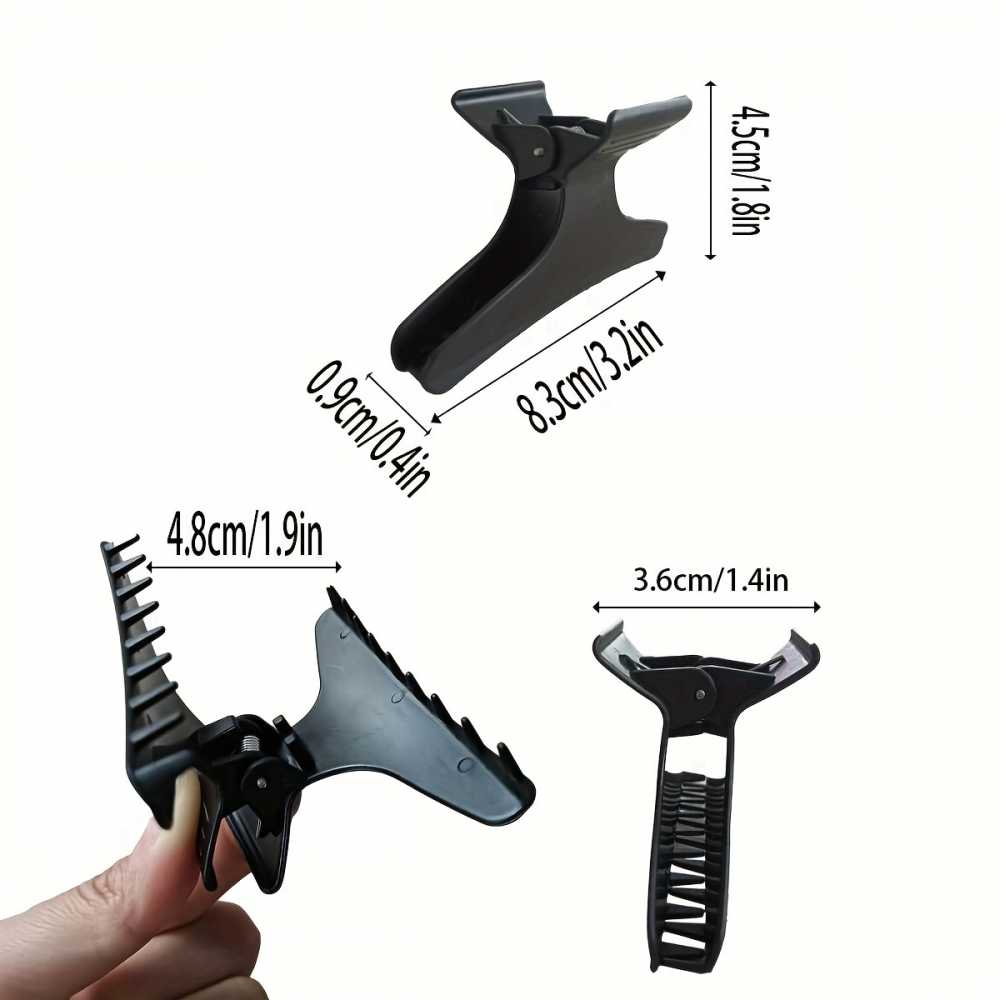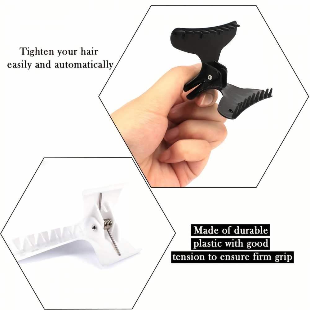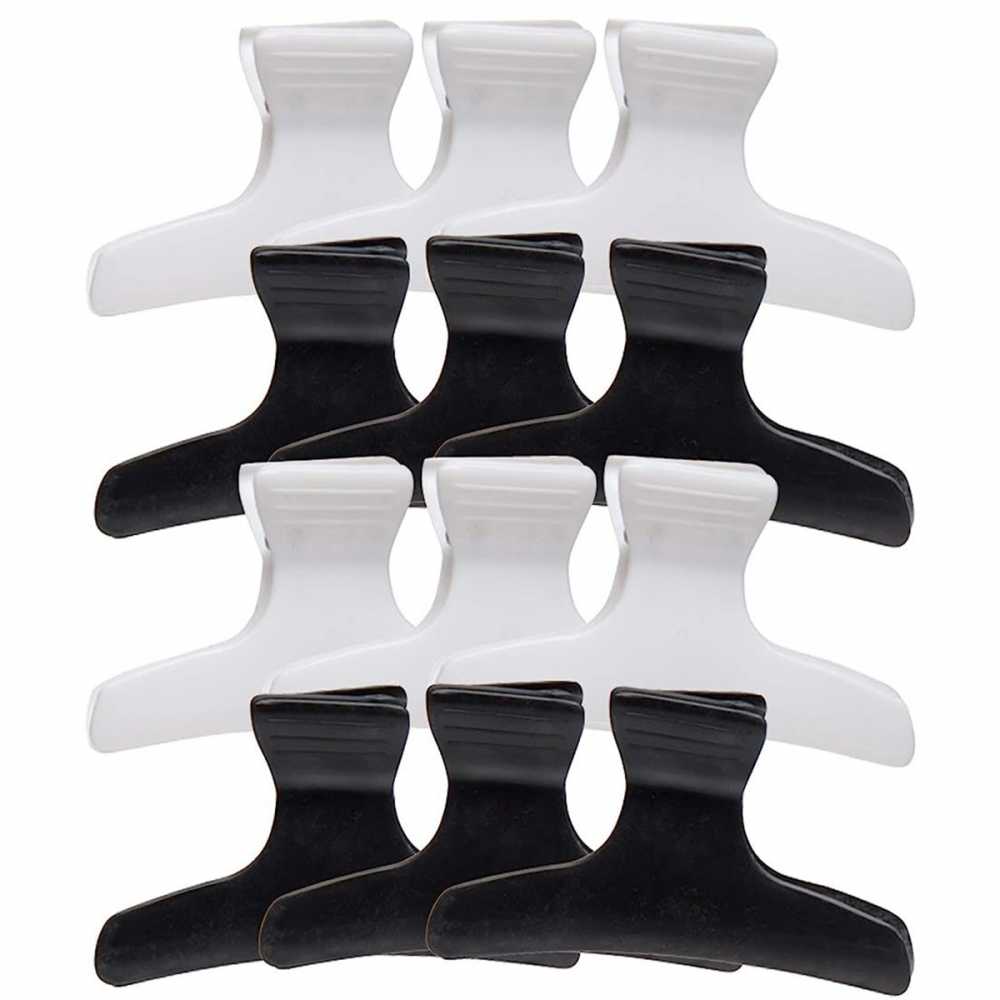 The 12PCS Butterfly Hair Clips are designed for both professional and everyday use, providing an efficient solution for hair styling, sectioning, cutting, and coloring. Crafted from durable black and white plastic, these clips feature a strong, butterfly style clamp that securely holds hair in place without slipping or causing damage. The wide, non slip teeth ensure a firm grip on any hair type, from fine to thick, allowing for precise sectioning during styling or coloring. The set of 12 provides ample clips for various sections, and the sleek black and white color combination offers a stylish, minimalist look. Lightweight yet sturdy, these clips are easy to use and comfortable to wear for extended periods, making them a must have tool for both salon and personal use.