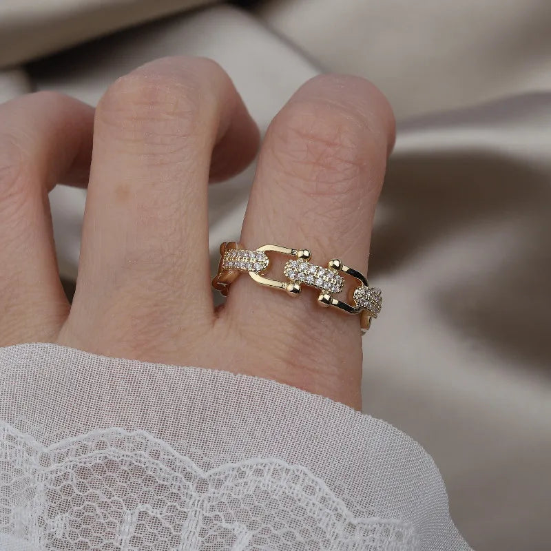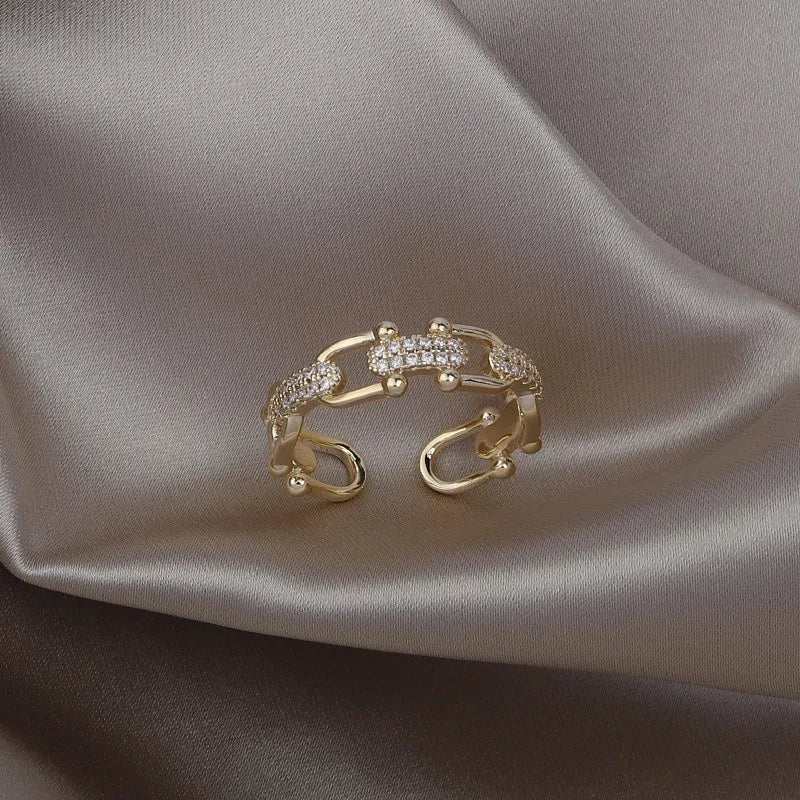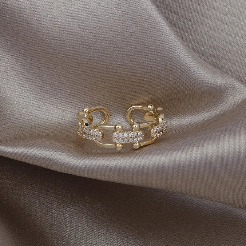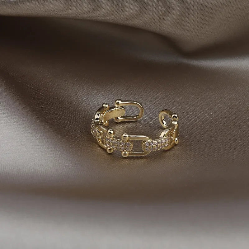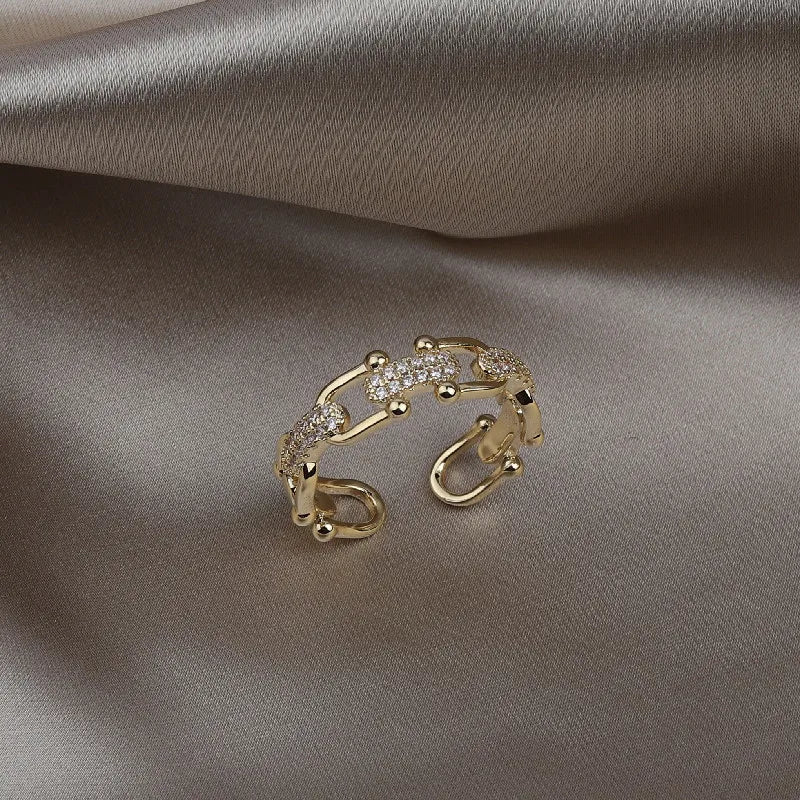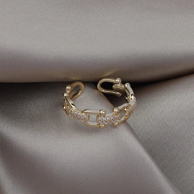 This stylish ring is a perfect accessory for daily work. Made with 14K real electroplating, it features a open design with letter U and zircon accents.