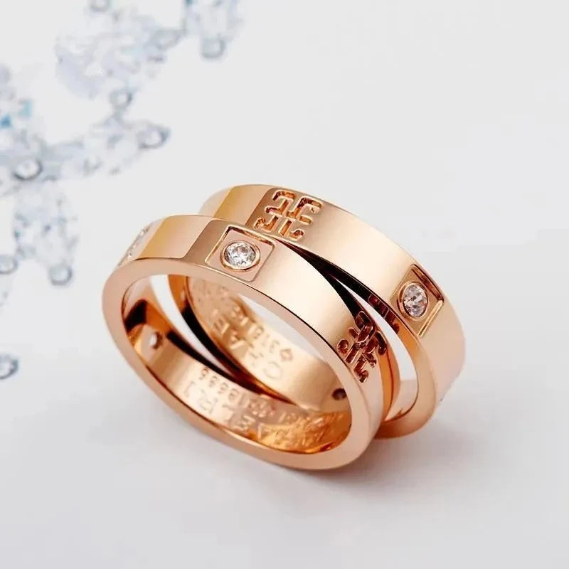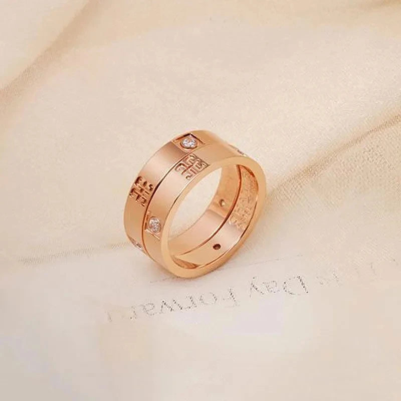 Elegant and classic, this retro gemstone ring features a purple inlay set in 14K rose gold plating. Perfect for both men and women, this ring adds a touch of sophistication to any outfit.