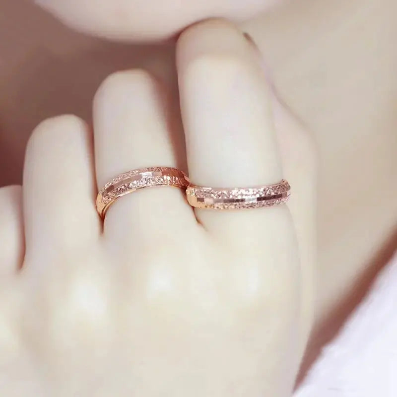 Elegant and stylish couple rings crafted in 14K rose gold with a beautiful purple gemstone. These geometric open rings exude classic glamour, perfect for engagements or special occasions.