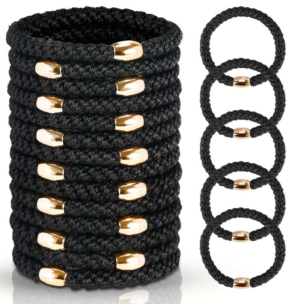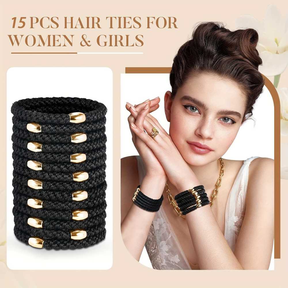 15pcs Women's Black Hair Rings, Simple Elastic Non Damaging Hair Bands