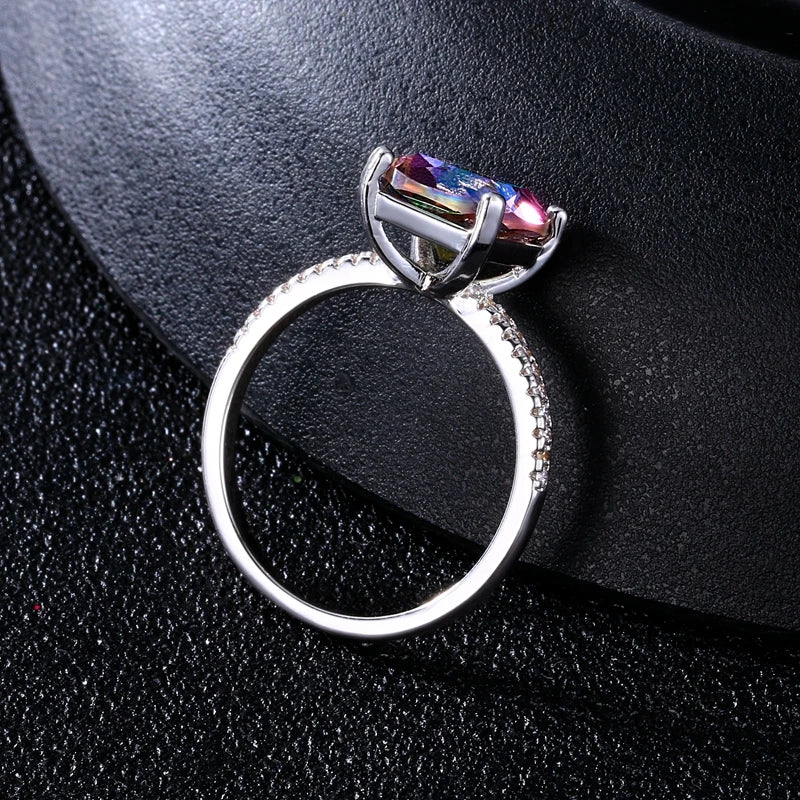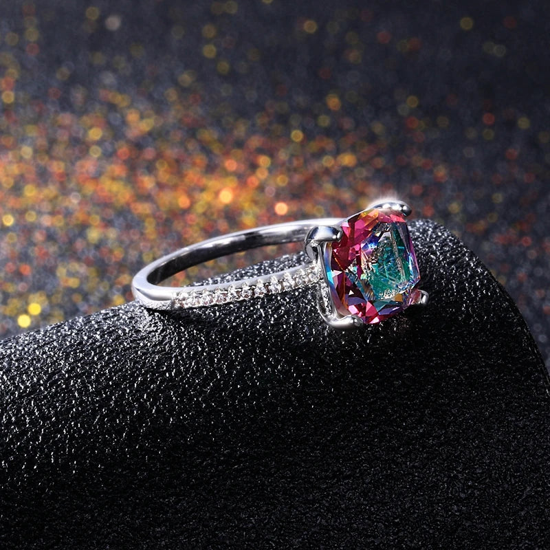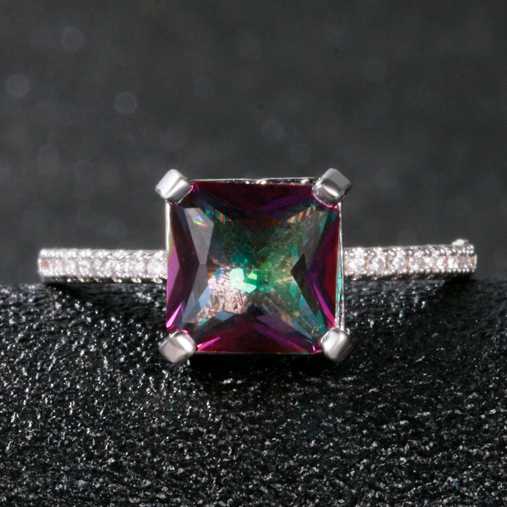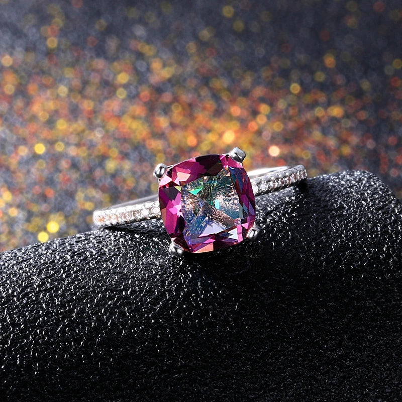Stunning chamfer square ring with 8*8MM amethyst gemstone, perfect for weddings and anniversaries. A beautiful Valentine's Day gift.