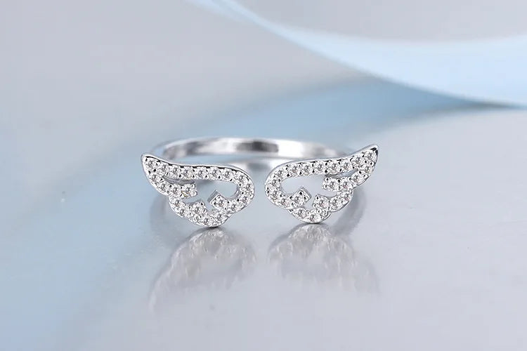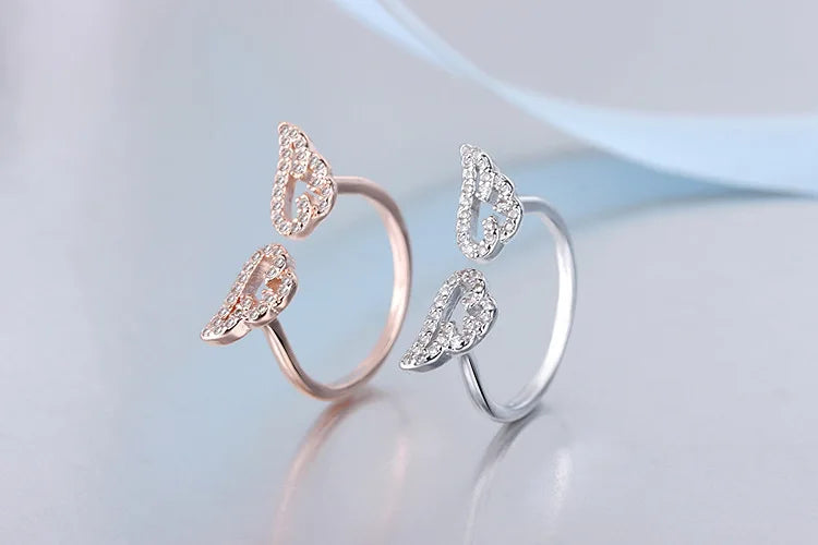 Stunning Angel Wings Ring featuring AAA+ Zirconia Crystals. Perfect for engagement, wedding, or party. Ideal gift for women.