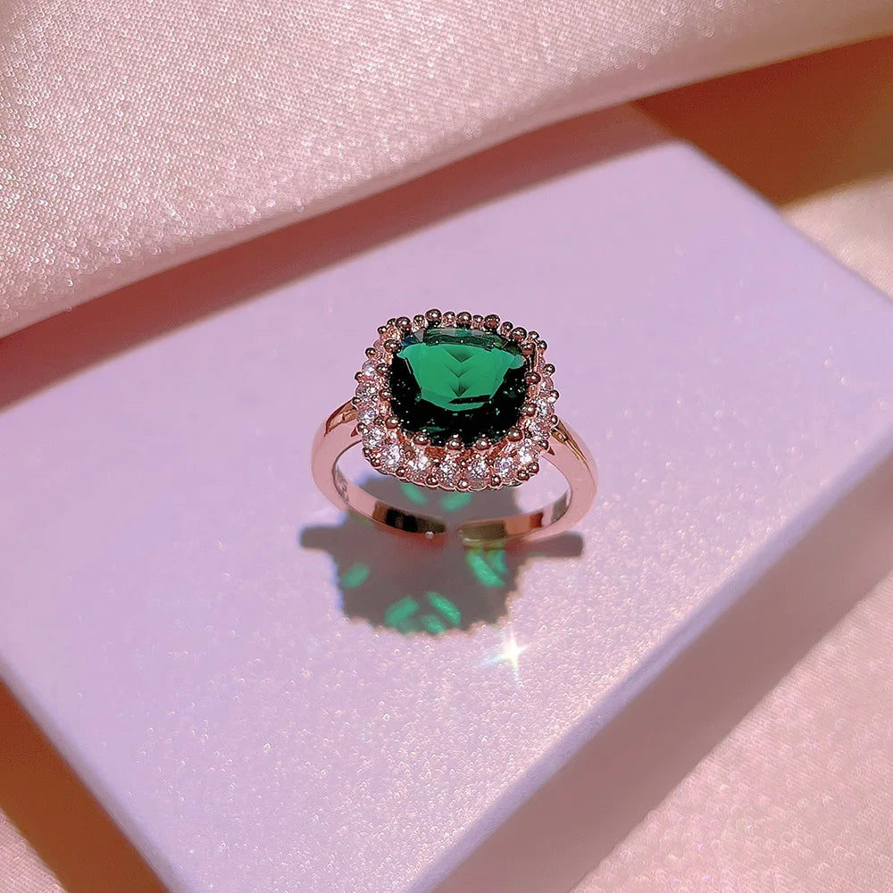 925 Silver Emerald Ring Zircon Wedding Jewelry Gift