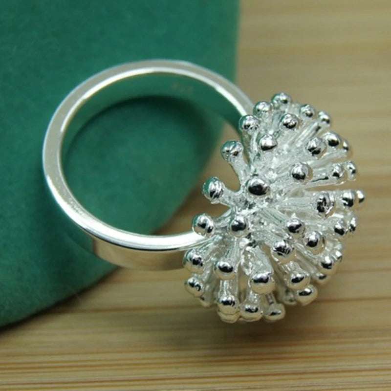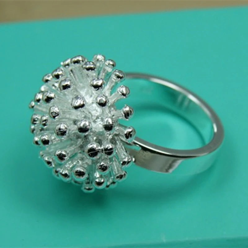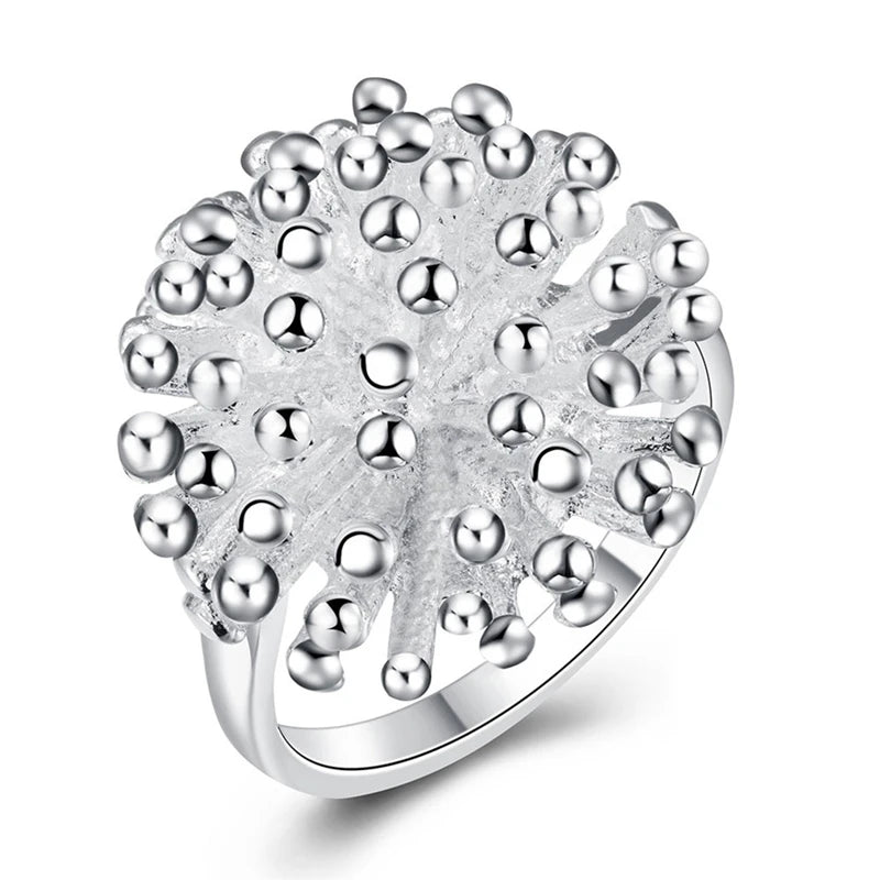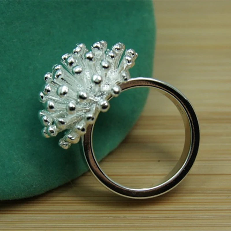 Add a touch of elegance to your look with this stunning 925 sterling silver ring featuring a vibrant firework coral design. Perfect for weddings or engagements, this beautiful piece makes a thoughtful gift for someone special.