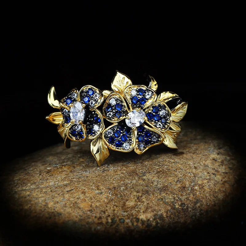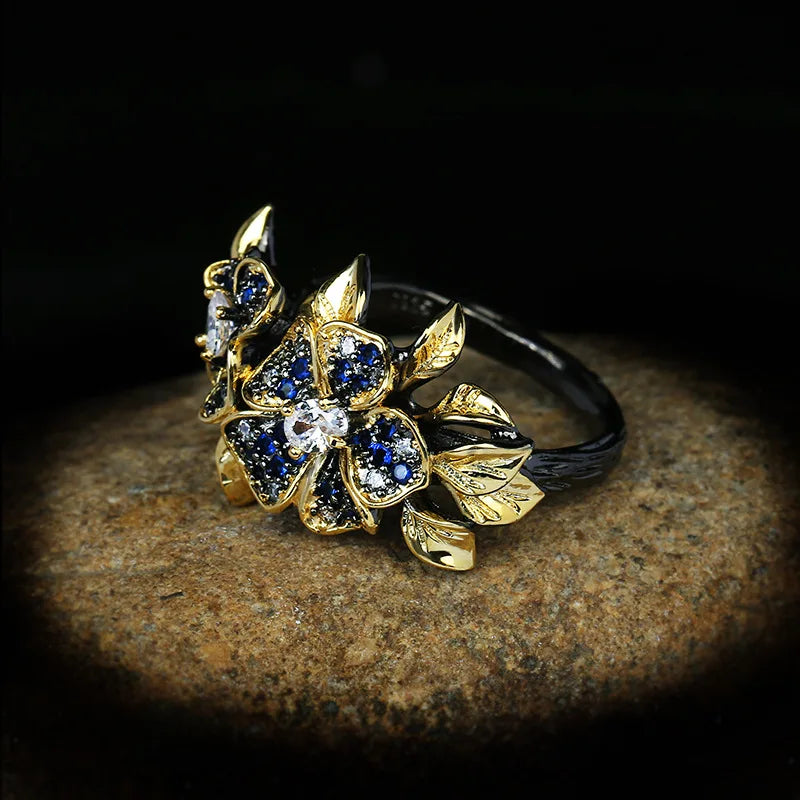 This unique style ring is perfect for weddings or everyday wear. Made from 925 silver, this ring features a stunning flower design with colorful zircon accents.
