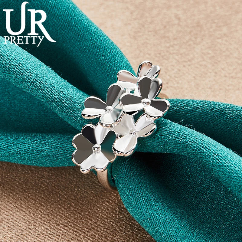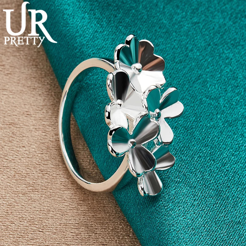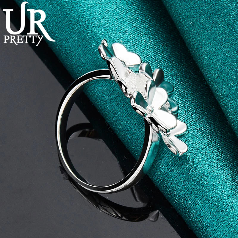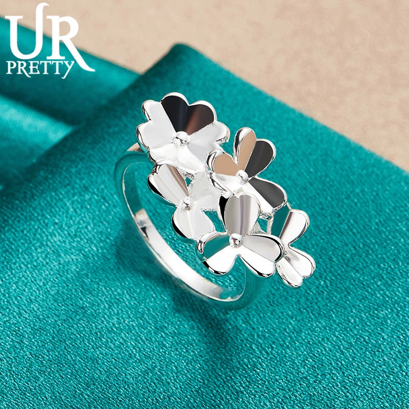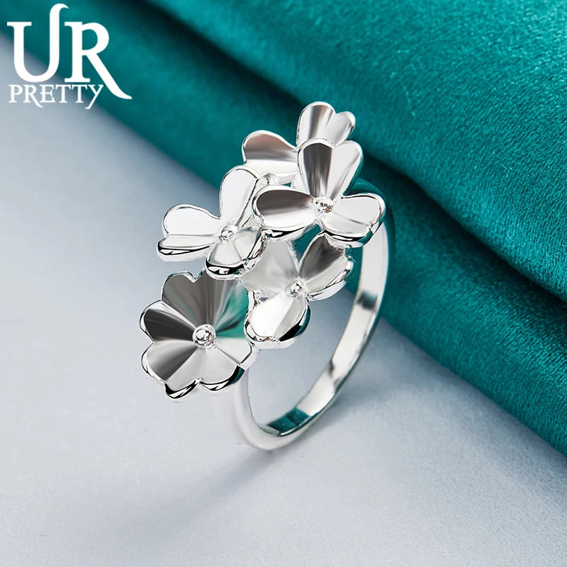 This stunning 925 sterling silver ring features a delicate flowers design. Perfect for engagement or wedding.