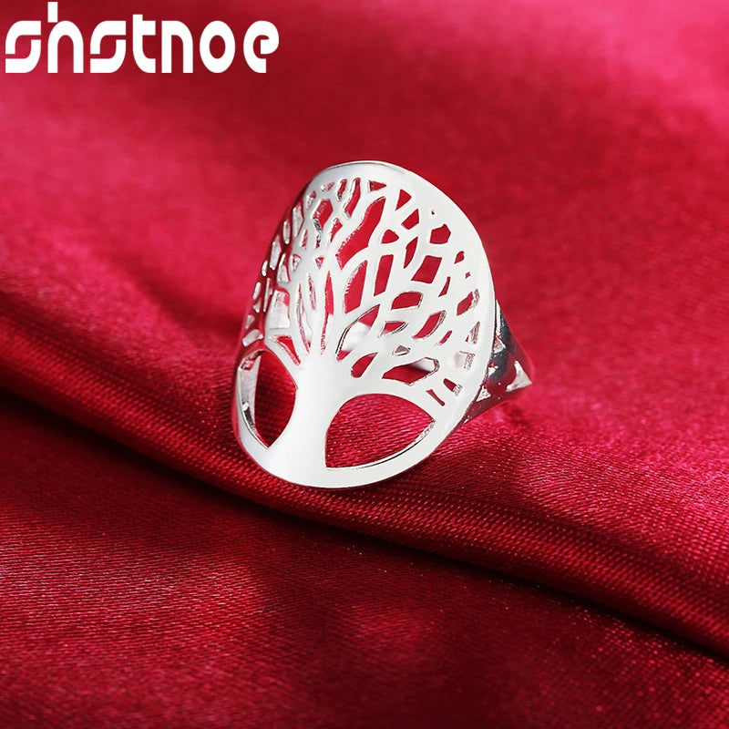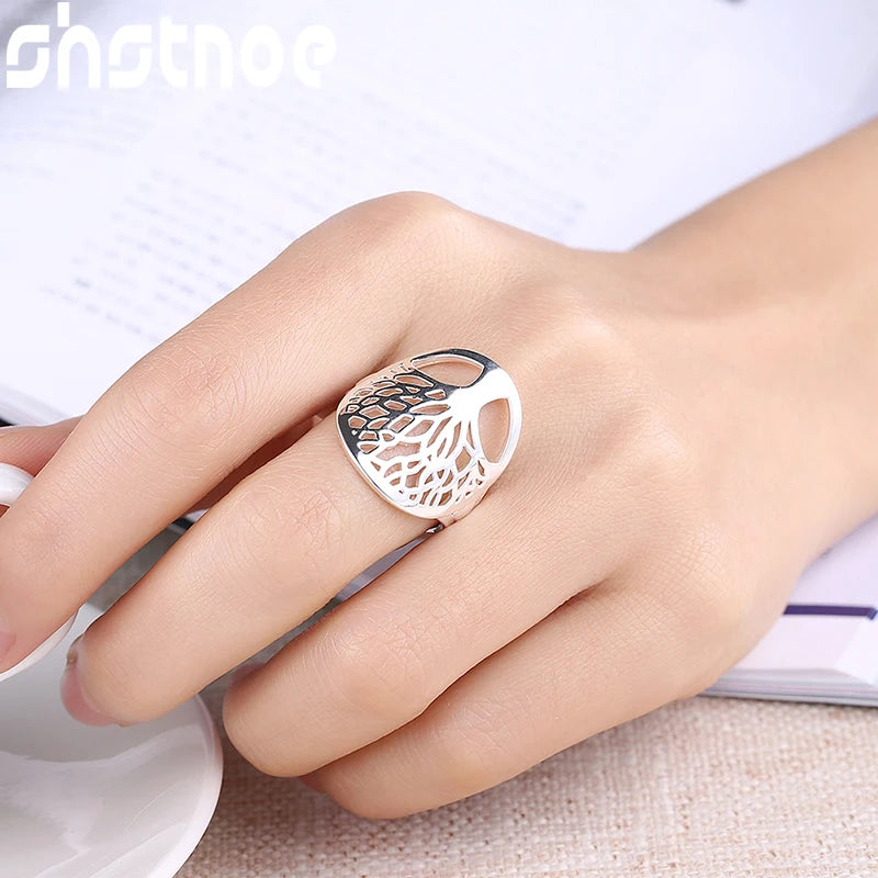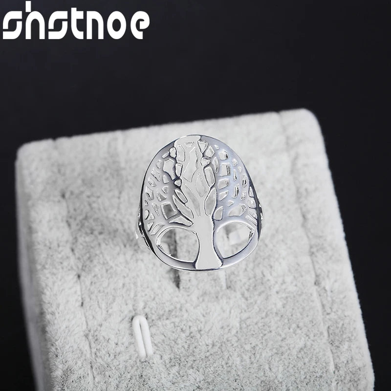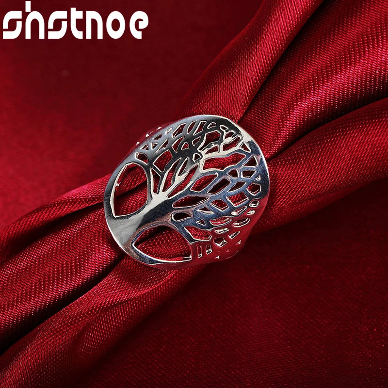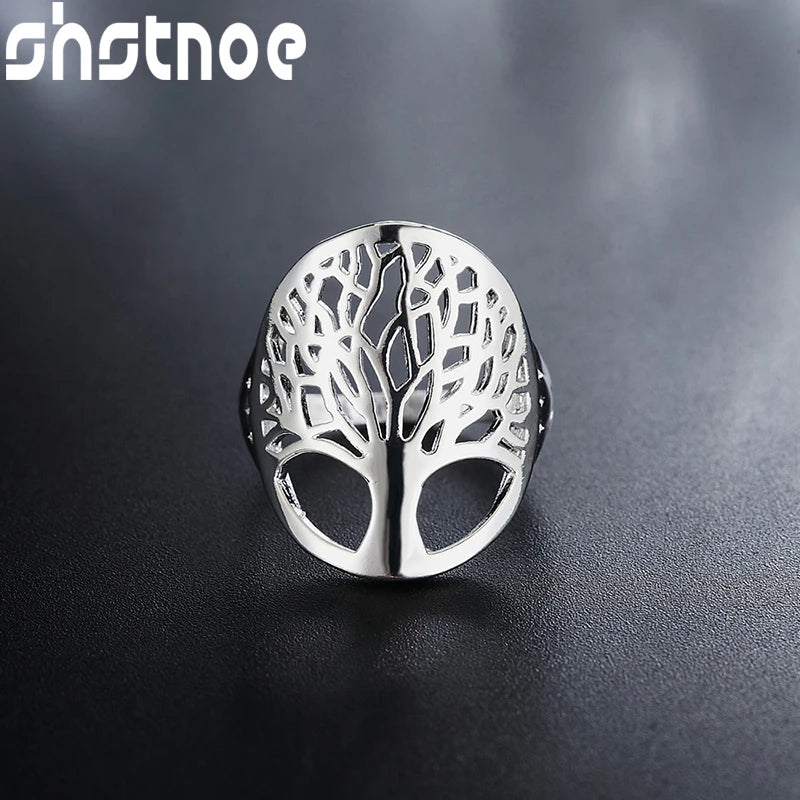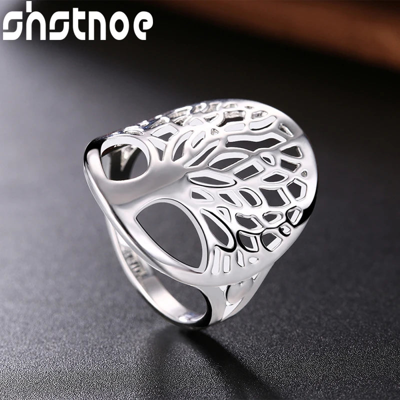 This 925 sterling silver ring features a hollow tree of life design, perfect for engagements, weddings, parties, or as a gift. A stylish and meaningful piece of jewelry for both men and women.
