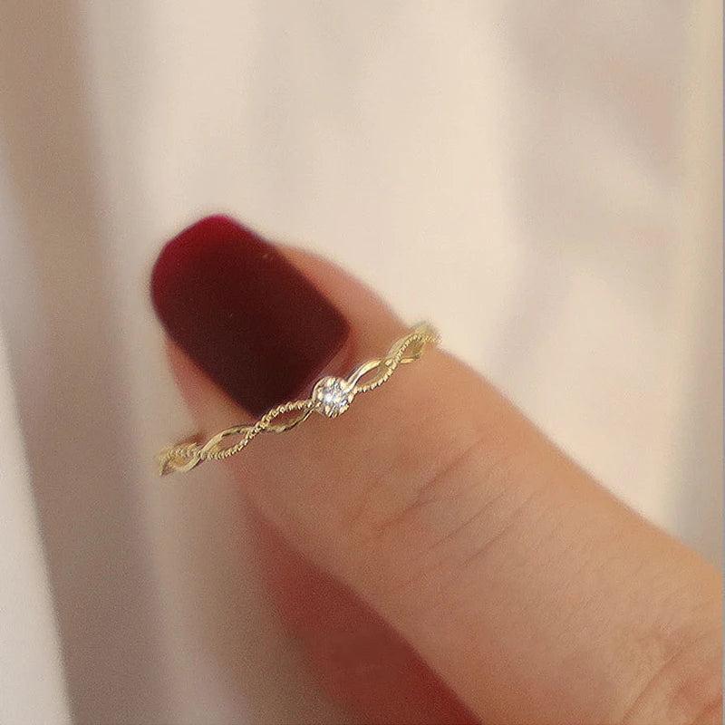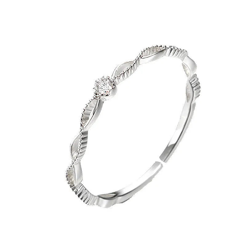Elegant wedding ring with intricate twist design and sparkling zircon stones, crafted from high-quality 925 sterling silver.