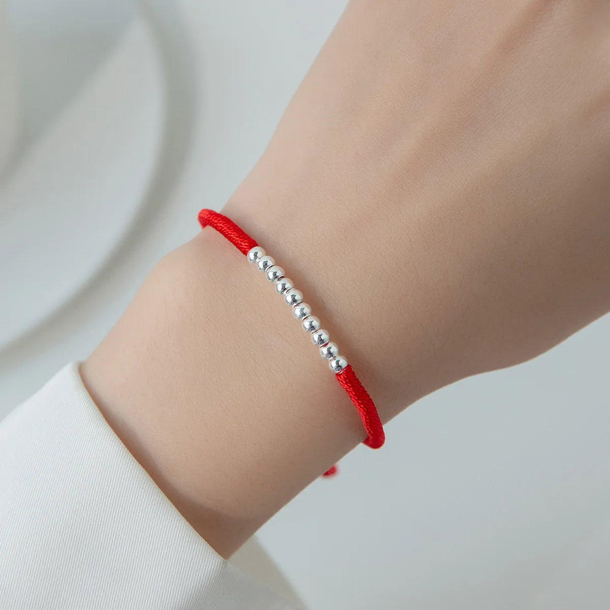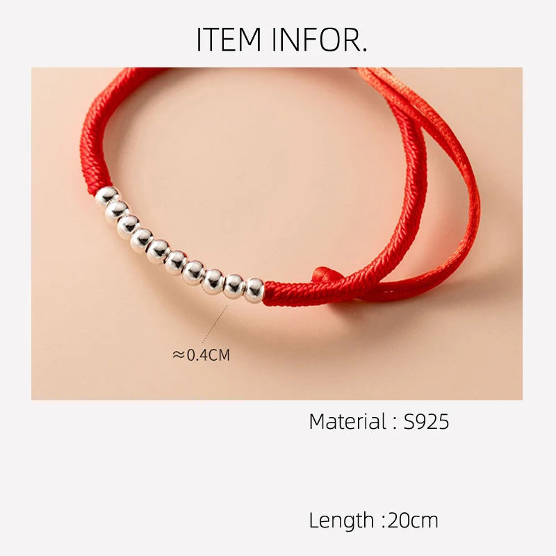 Get this elegant 925 sterling silver rope bracelet with red thread line string. Perfect for women and girls, brings luck and style to any outfit.