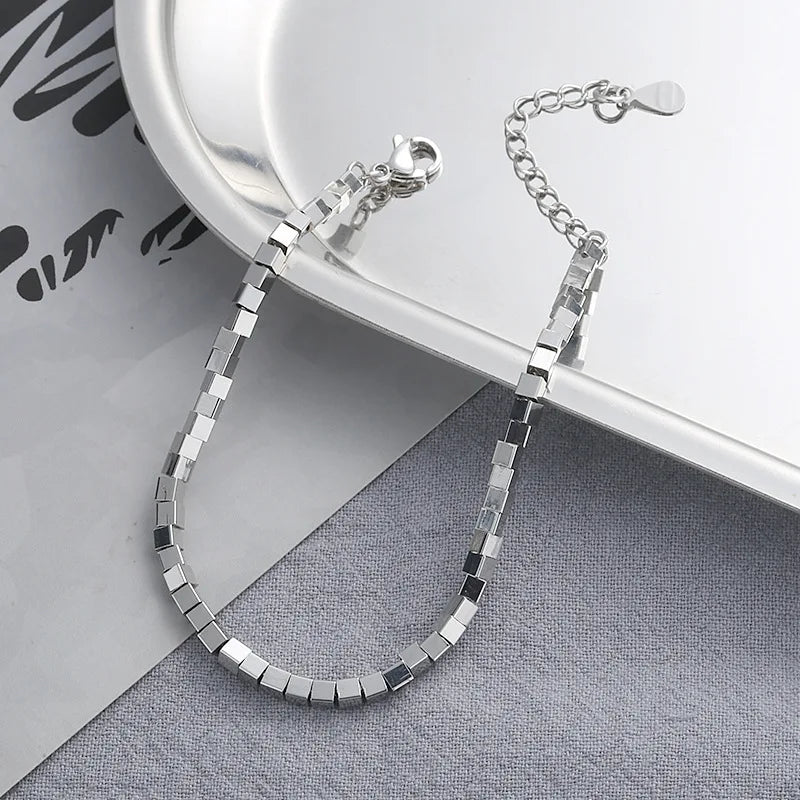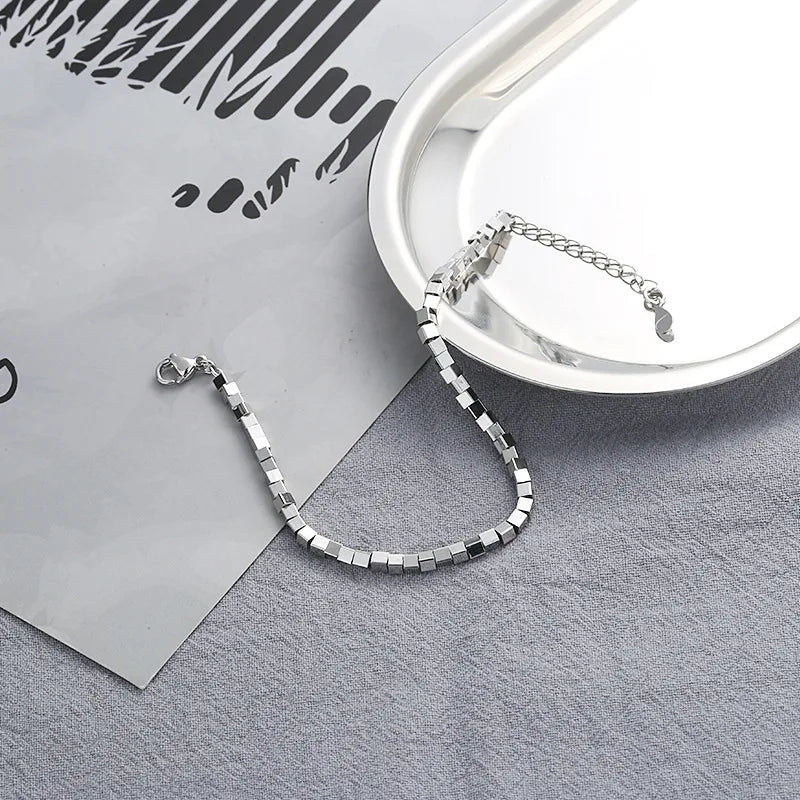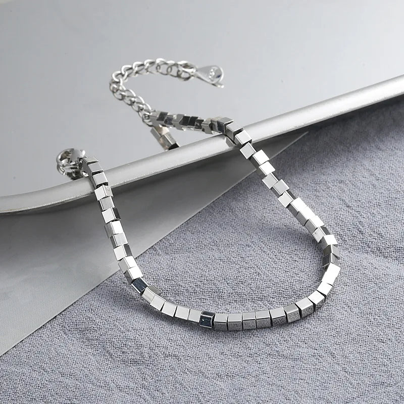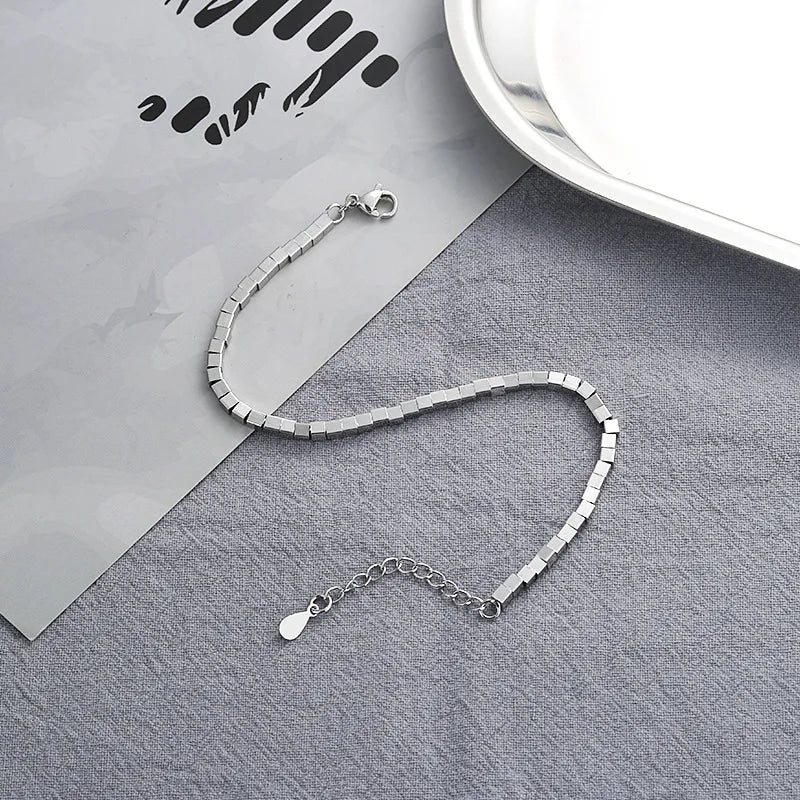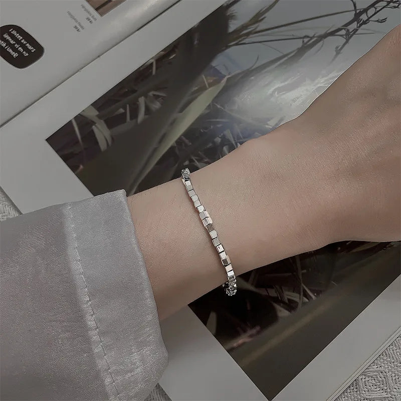 Add a touch of geometric style with this adjustable small square bracelet made of 925 sterling silver.