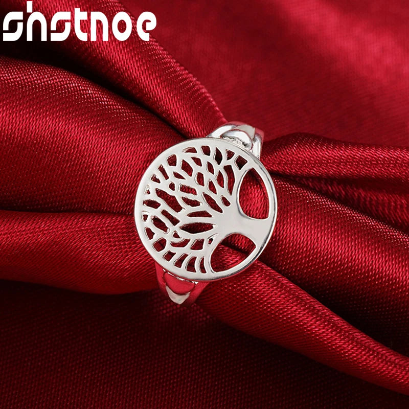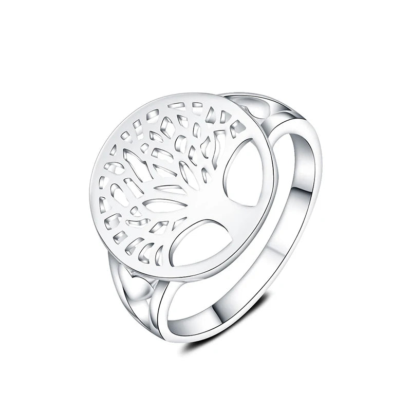 This stunning Tree of Life ring is made of 925 sterling silver and features a hollow round design. Ideal for engagement, wedding, party or as a special gift.