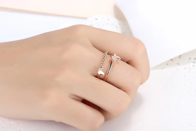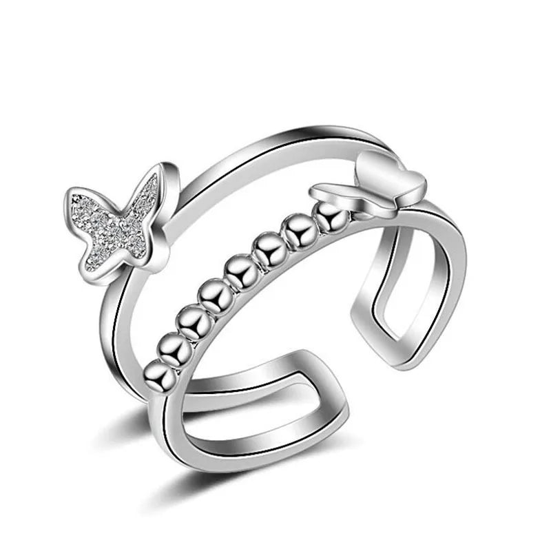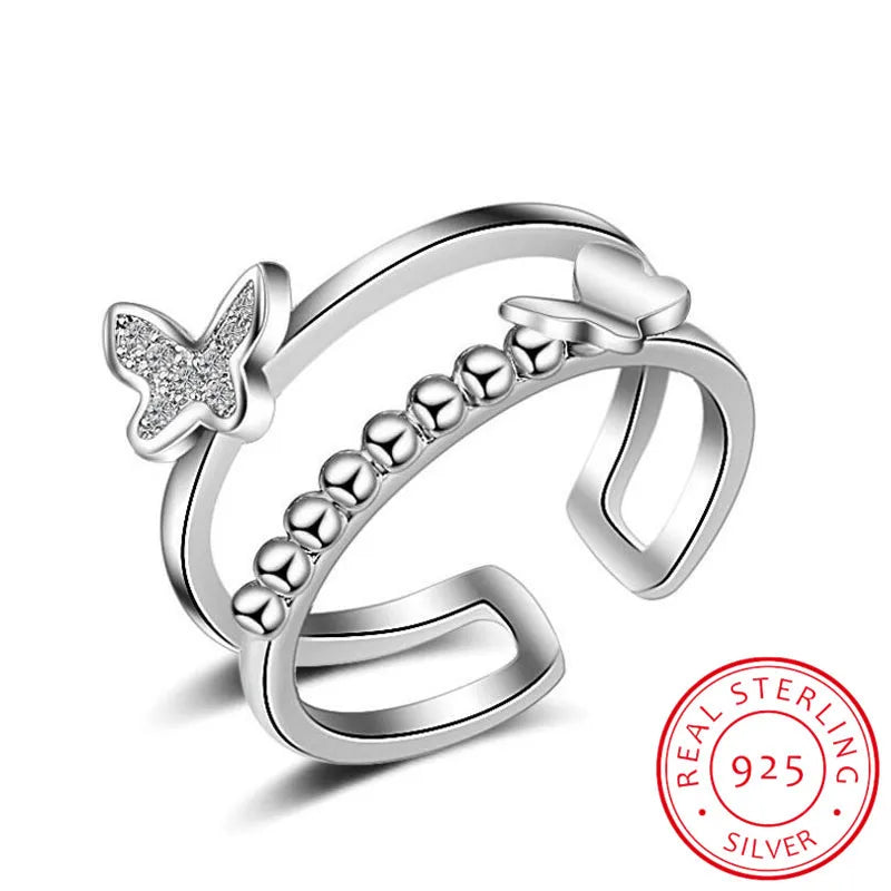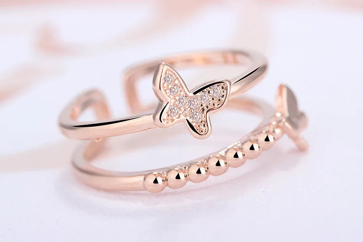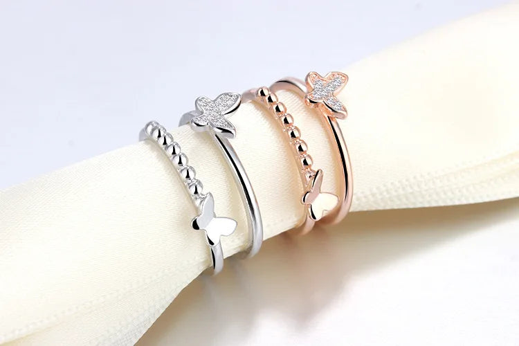 Exquisite sterling silver wedding ring with butterfly design and zirconia stones. Perfect for wedding parties and as a thoughtful present.