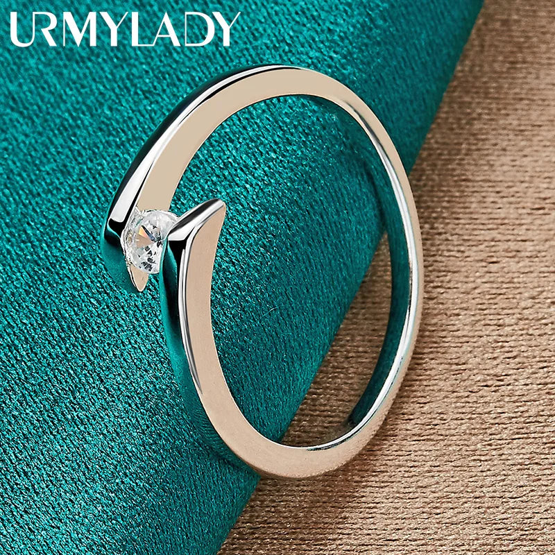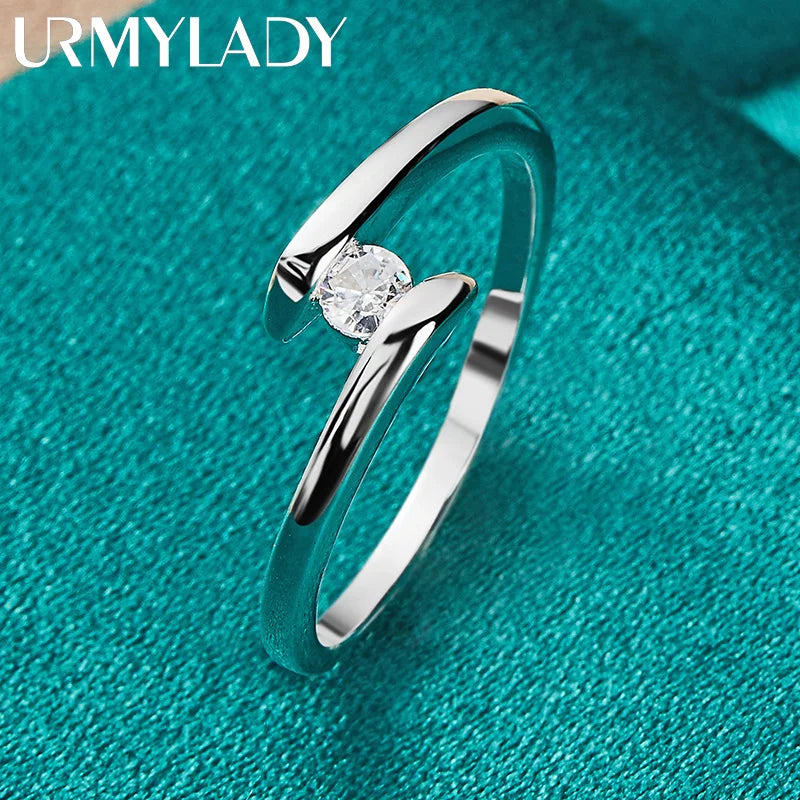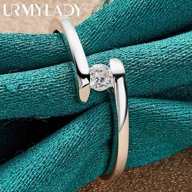 Elegant 925 sterling silver ring featuring a Wheel of Fortune design with zircon stones. Perfect for weddings, engagements, and parties.