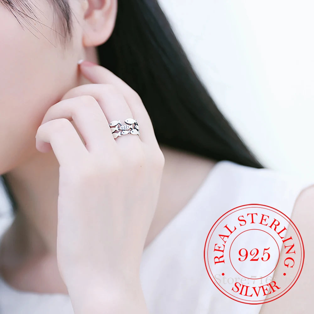 Add a touch of whimsical elegance to your look with this stunning 925 sterling silver fish ring. Made from high-quality sterling silver, this adjustable ring is perfect for women who love unique jewelry pieces.