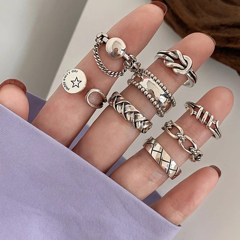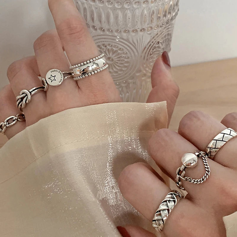 Elegant retro style ring crafted from genuine 925 sterling silver, featuring a unique geometric design. This adjustable ring is a chic addition to your jewelry collection.