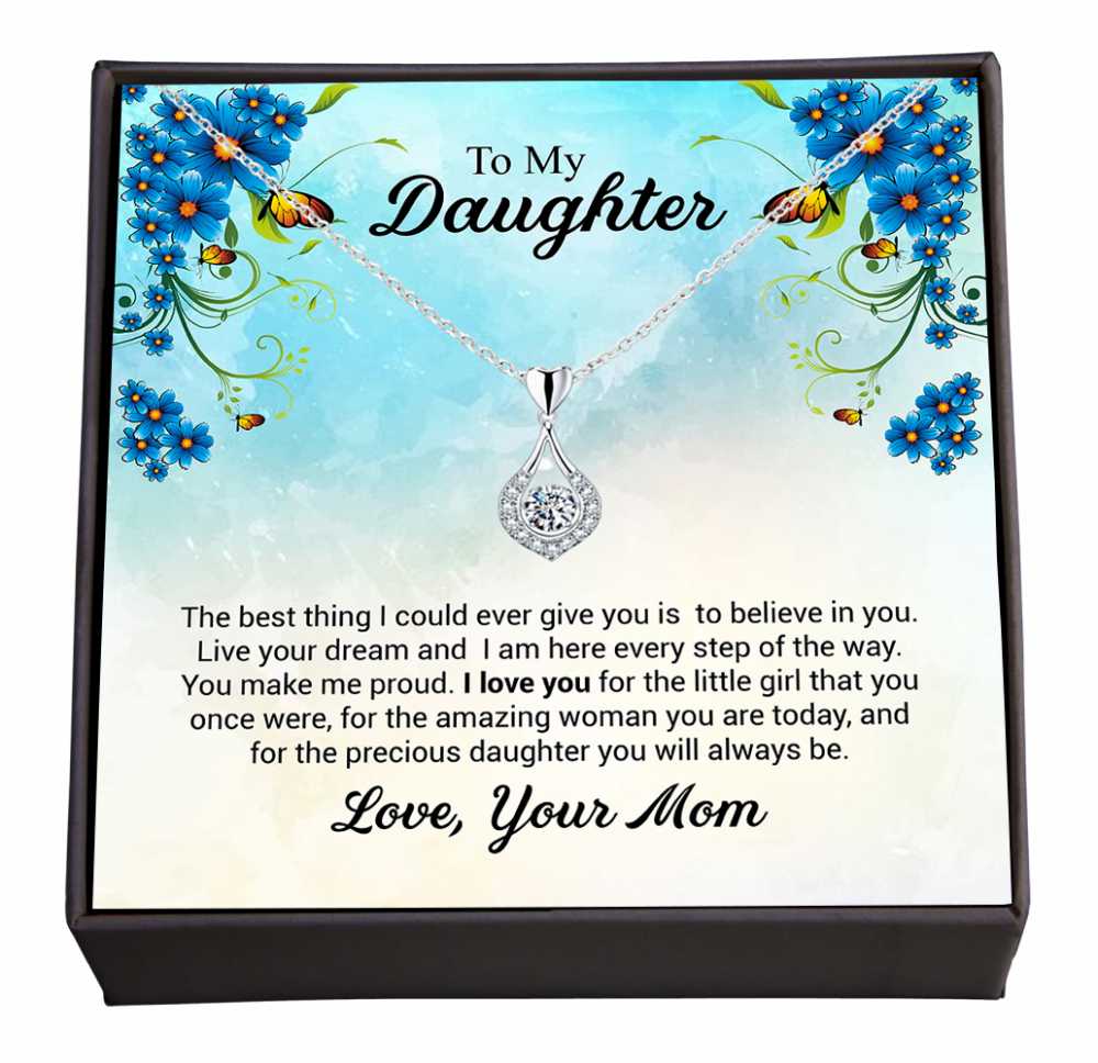 Celebrate the incredible woman in your life with this heartfelt keepsake. Designed to inspire and uplift, this piece serves as a constant reminder of your unwavering belief in her potential.Crafted with love, it features a touching personal message that encapsulates your pride and admiration. Whether for a birthday, graduation, or simply to brighten her day, this endearing memento is perfect for encouraging her to embrace her strength and brilliance.