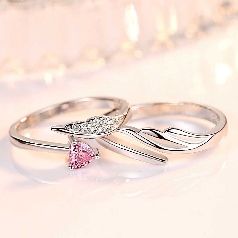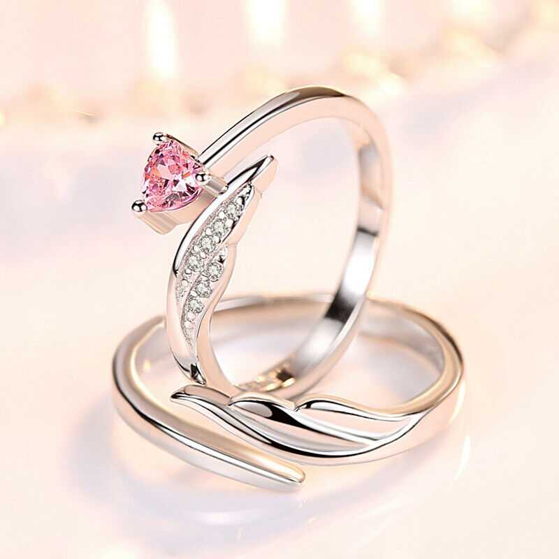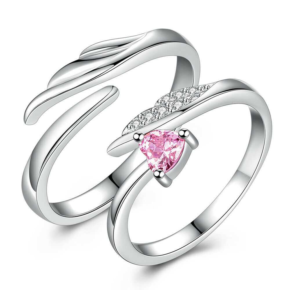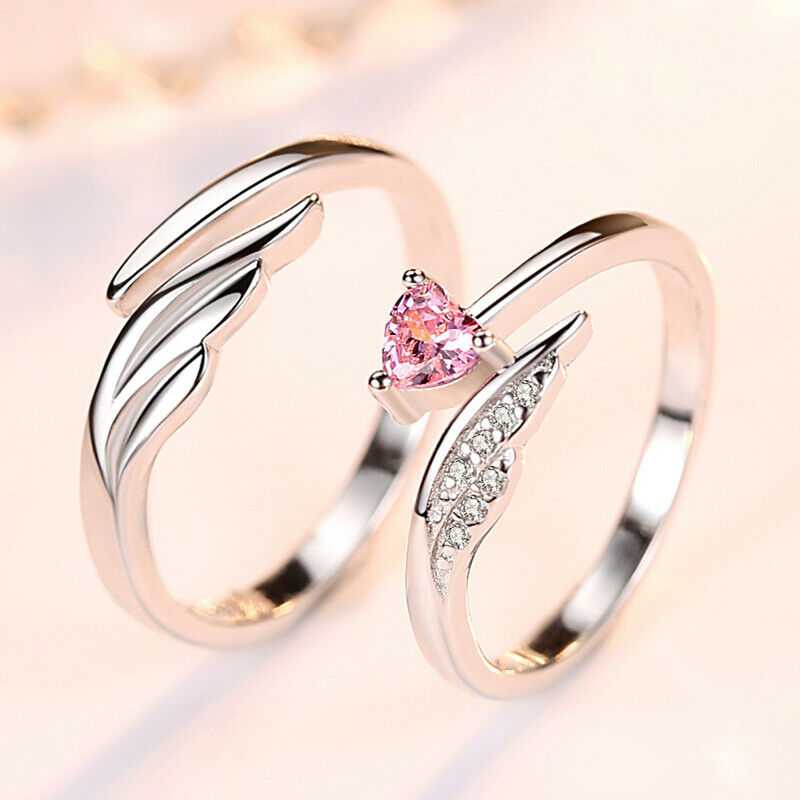 Couple's Angel Wing And Heart Shape Zirconia Adjustable Ring