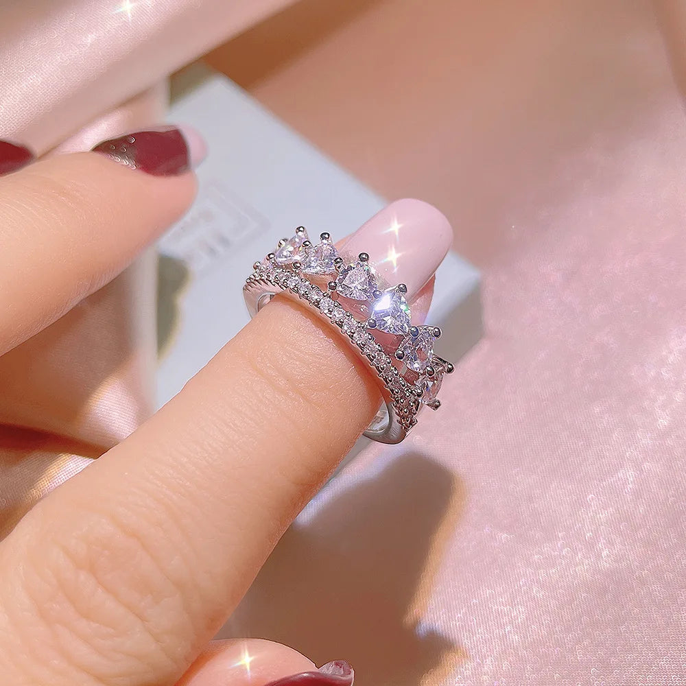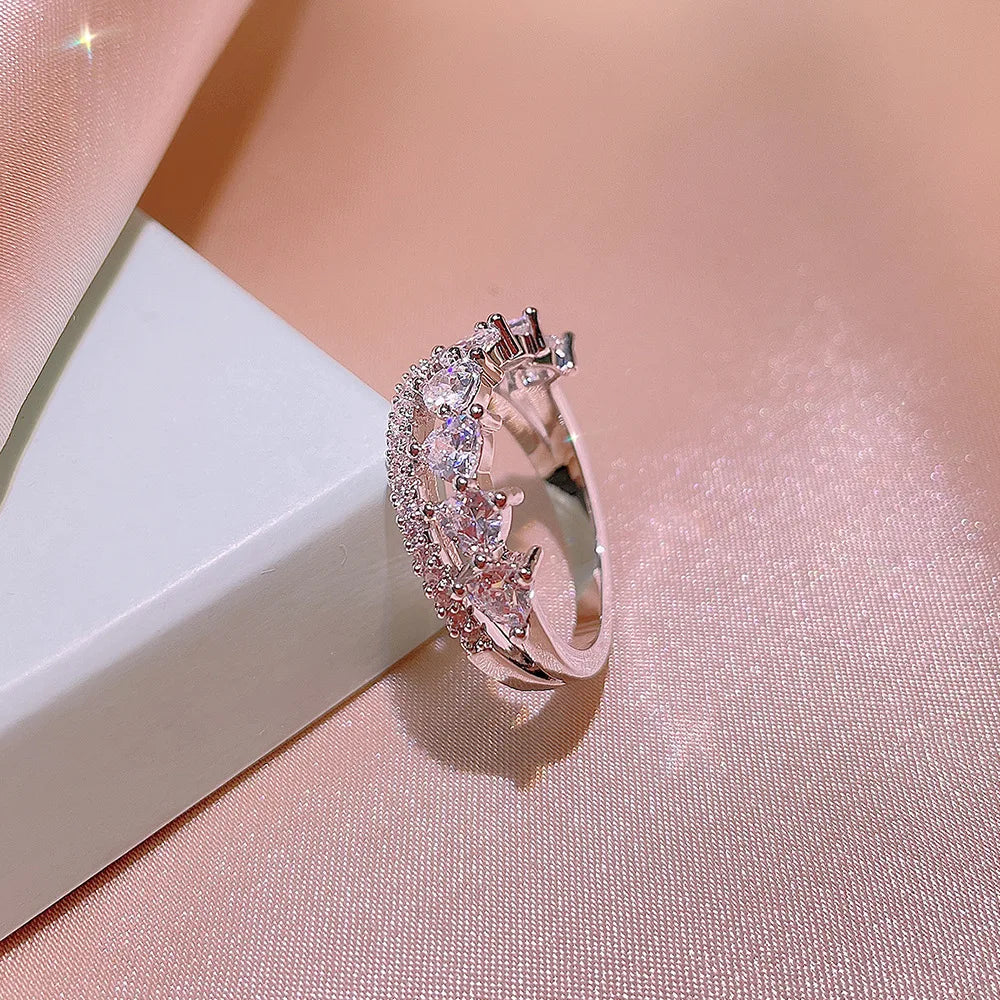 Make a statement with this stunning crown ring featuring zircon stones. Perfect for weddings, engagements, or as a special gift for women.
