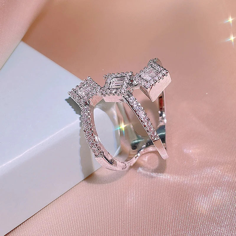 This beautiful double layer 3-GRAIN zircon ring is made of high-quality S925 silver, perfect as a gift for girls. This ring exudes elegance and charm, making it a must-have accessory for any jewelry collection.