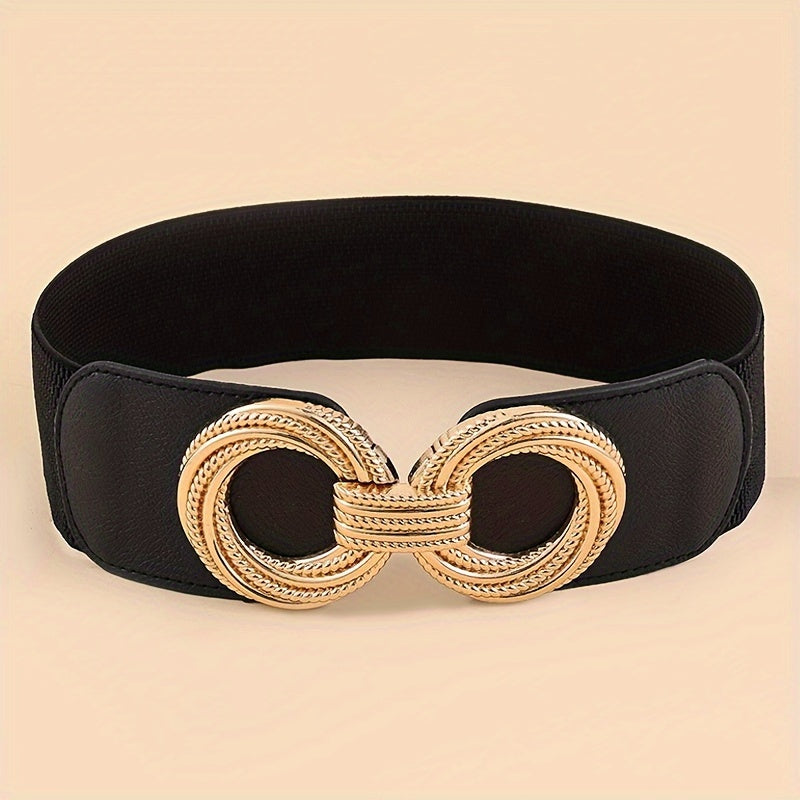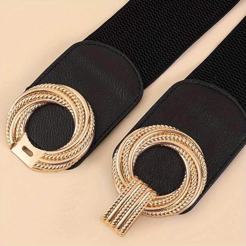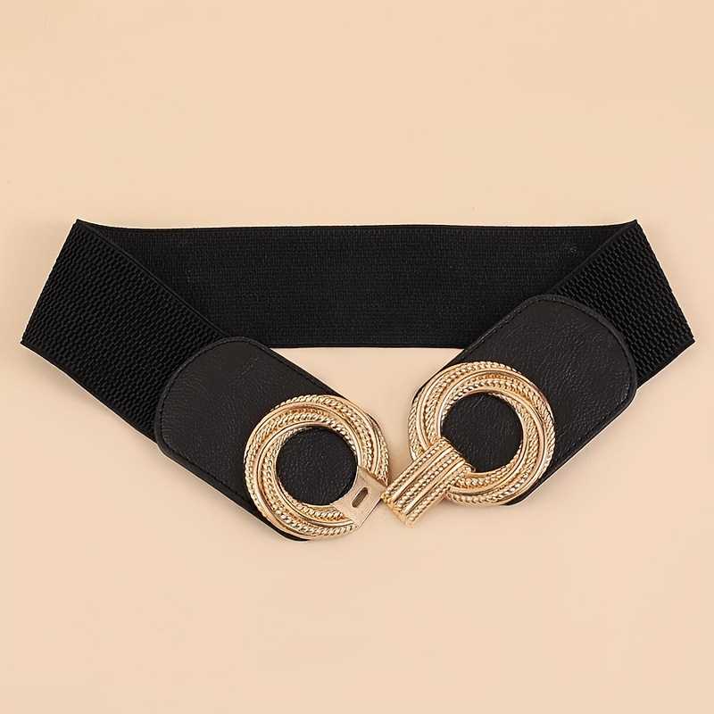 Double Swirl Ring Buckle Wide Belt for Women Solid Color Elastic Girdle